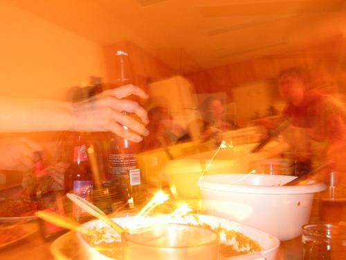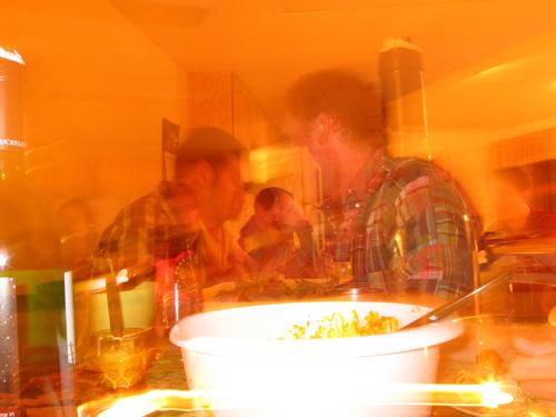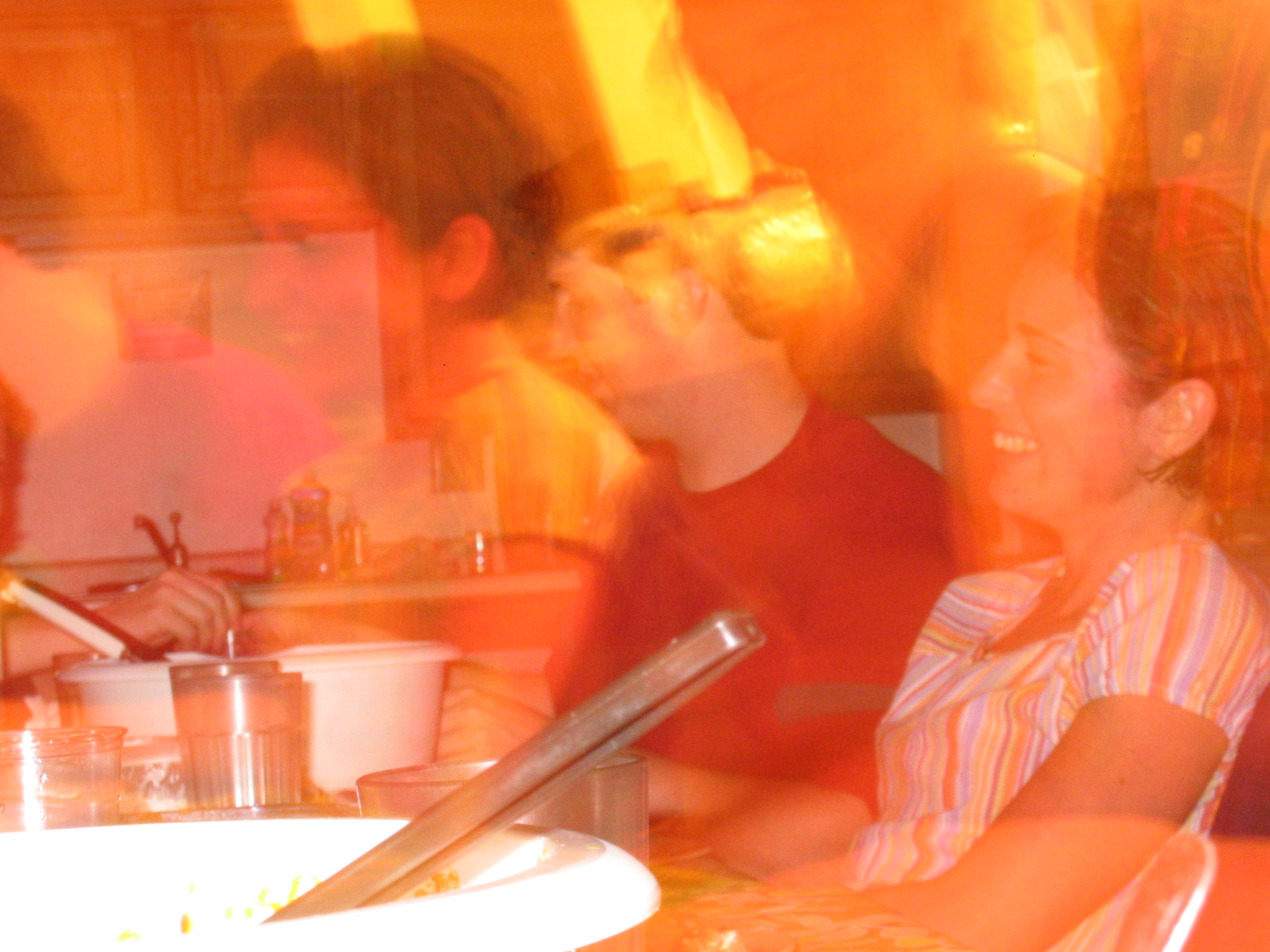 | Indian leftovers slowly cool while diners indulge the camera. |