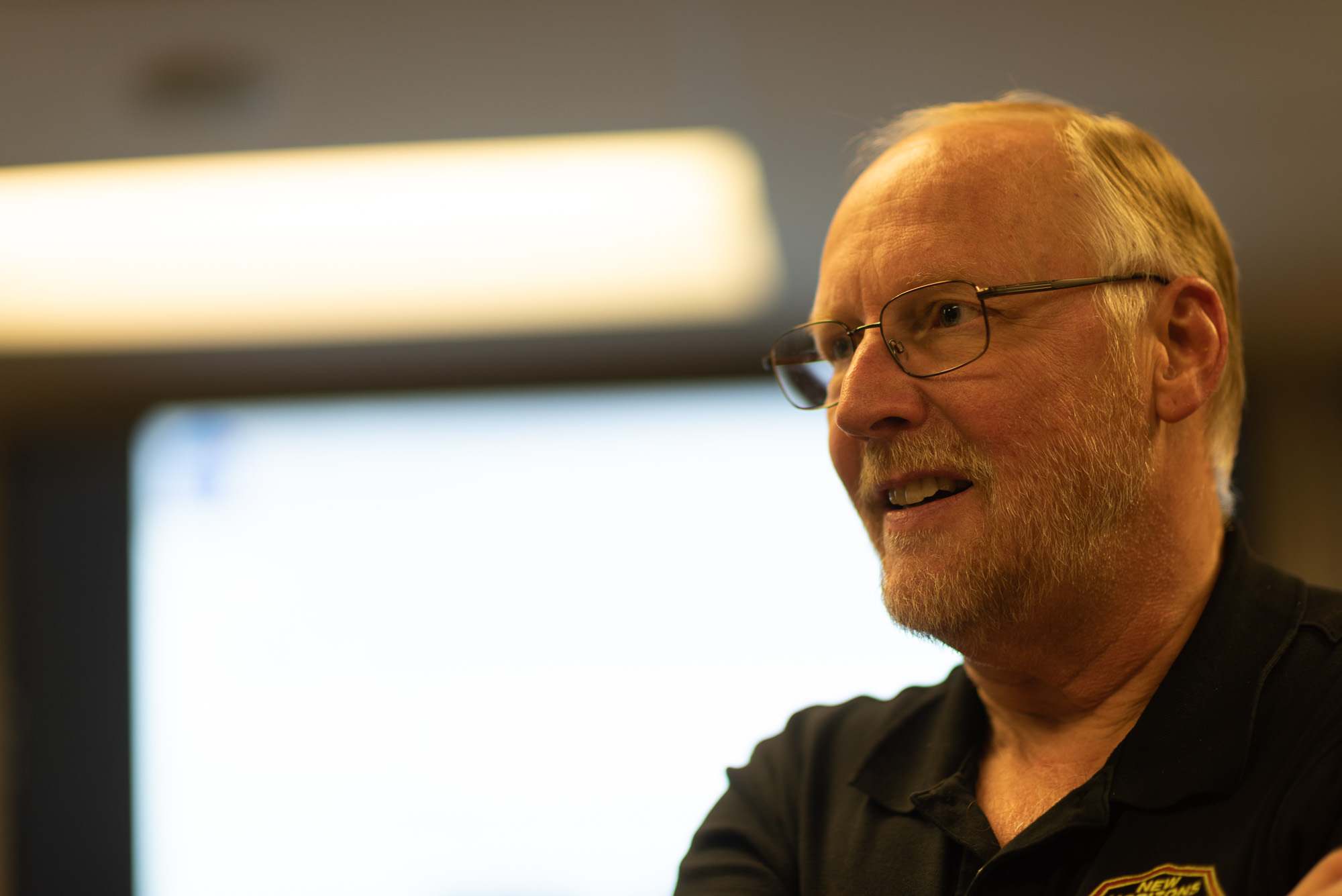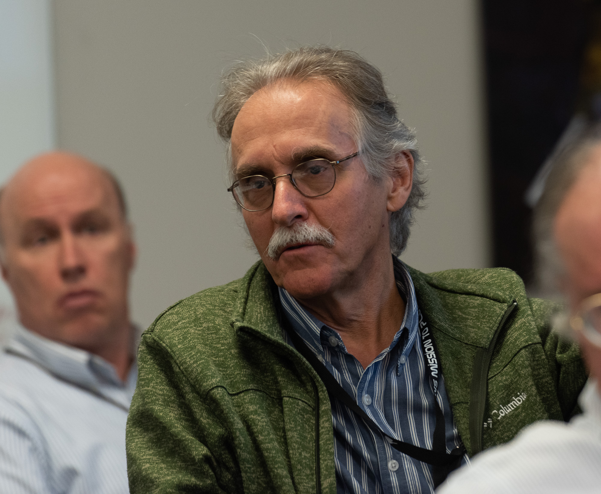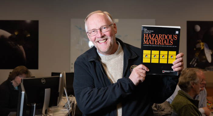 | Doug Mehoke gets the entire hazard team up to speed on damage probabilities. |