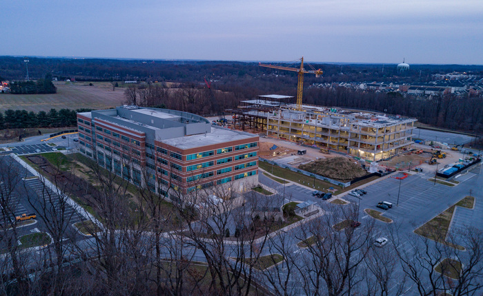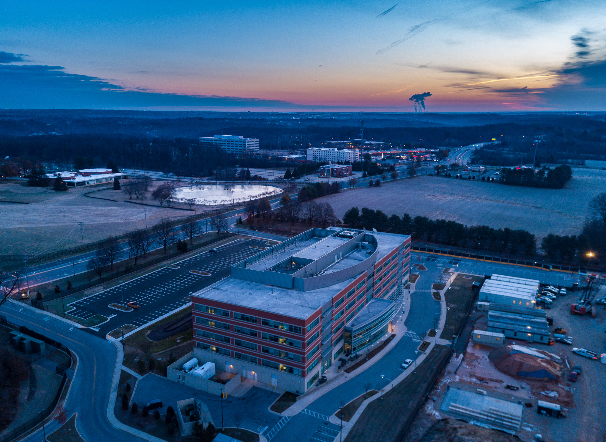 | Behind APL is the subdivision of Maple Lawn; to the left is a legitimate agricultural operation. |