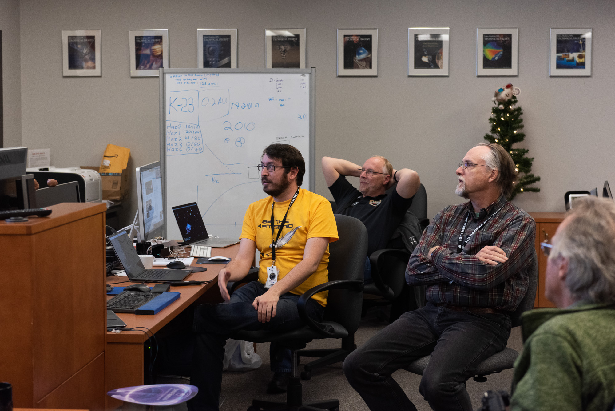 | Derek Nelson, center, is the head of New Horizons OpNav at KinetX. |