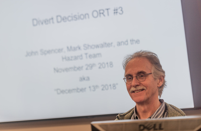 | John Spencer walks through a practice of various spacecraft scenarios he's dreamed up, which might cause us to consider diverting to the alternate path. |