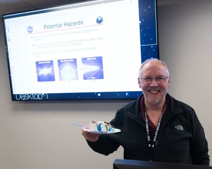 | Mark Showalter celebrates his birthday by running a telecon and talking about dust trajectories! |