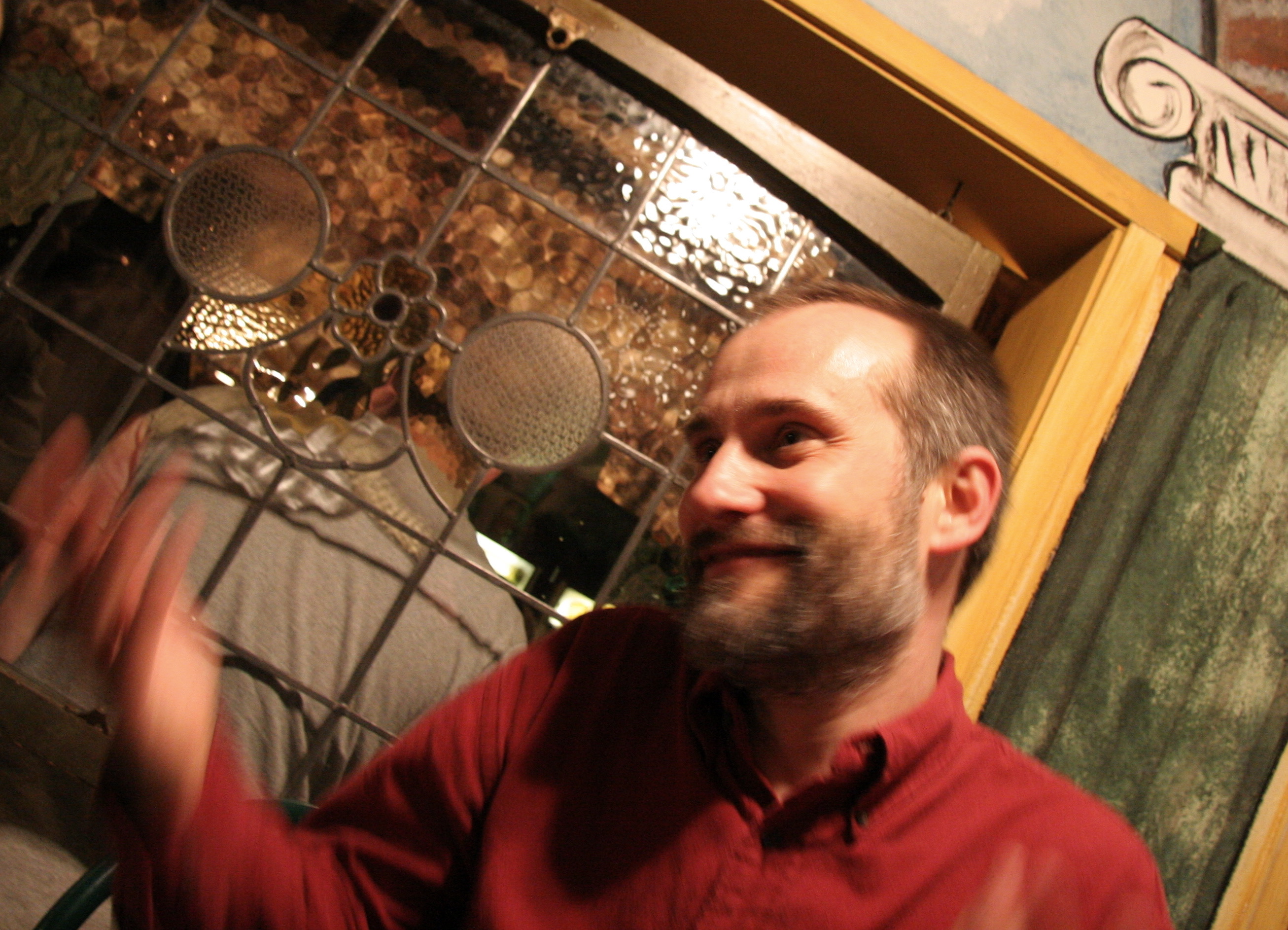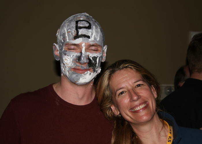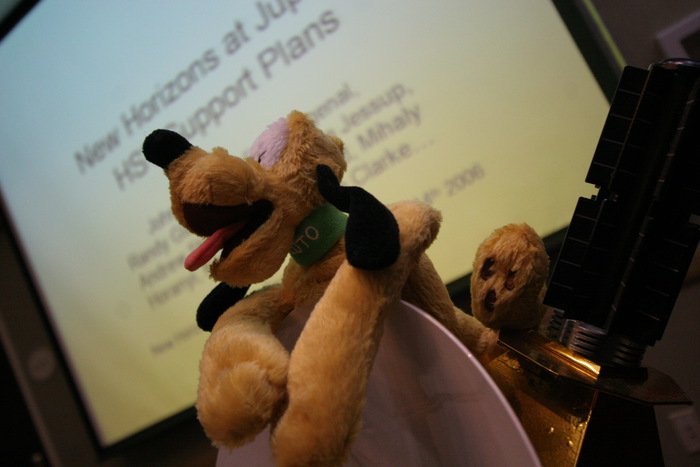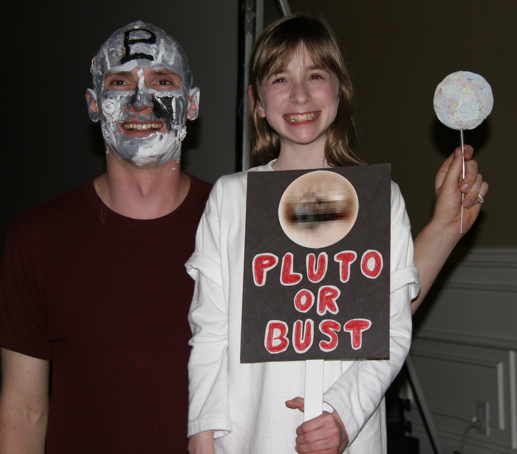 | "Alan -- you asked me if I could dress up as Pluto for the reception? I didn't know if you meant Pluto-the-dog, or Pluto-the-planet..." (And that's Charon in front of me.) |