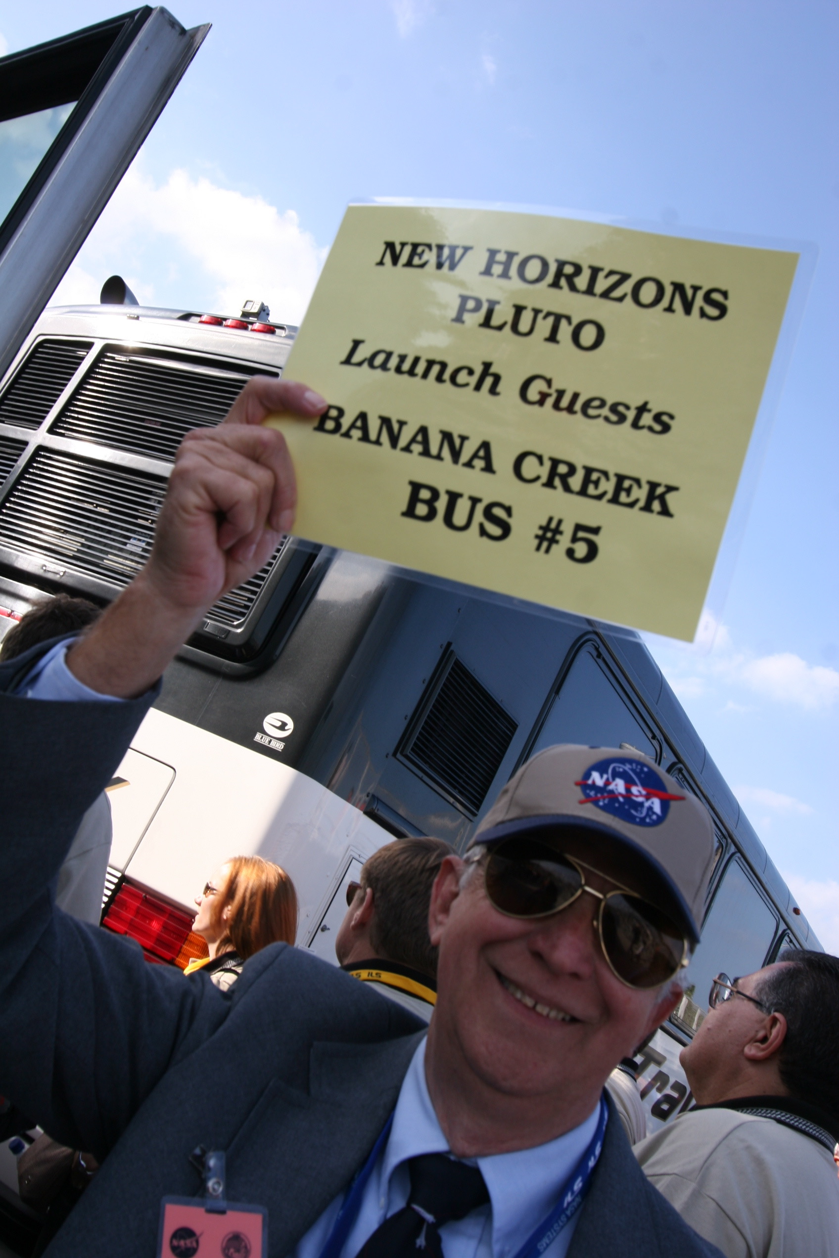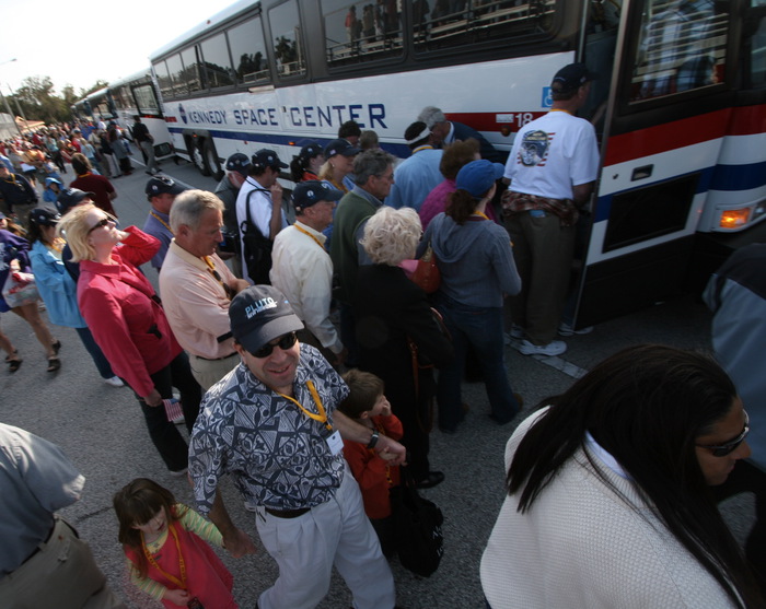 | Several of the 14 busses. We were allowed busses for three launch attempts, so there's an incentive to get off today. |