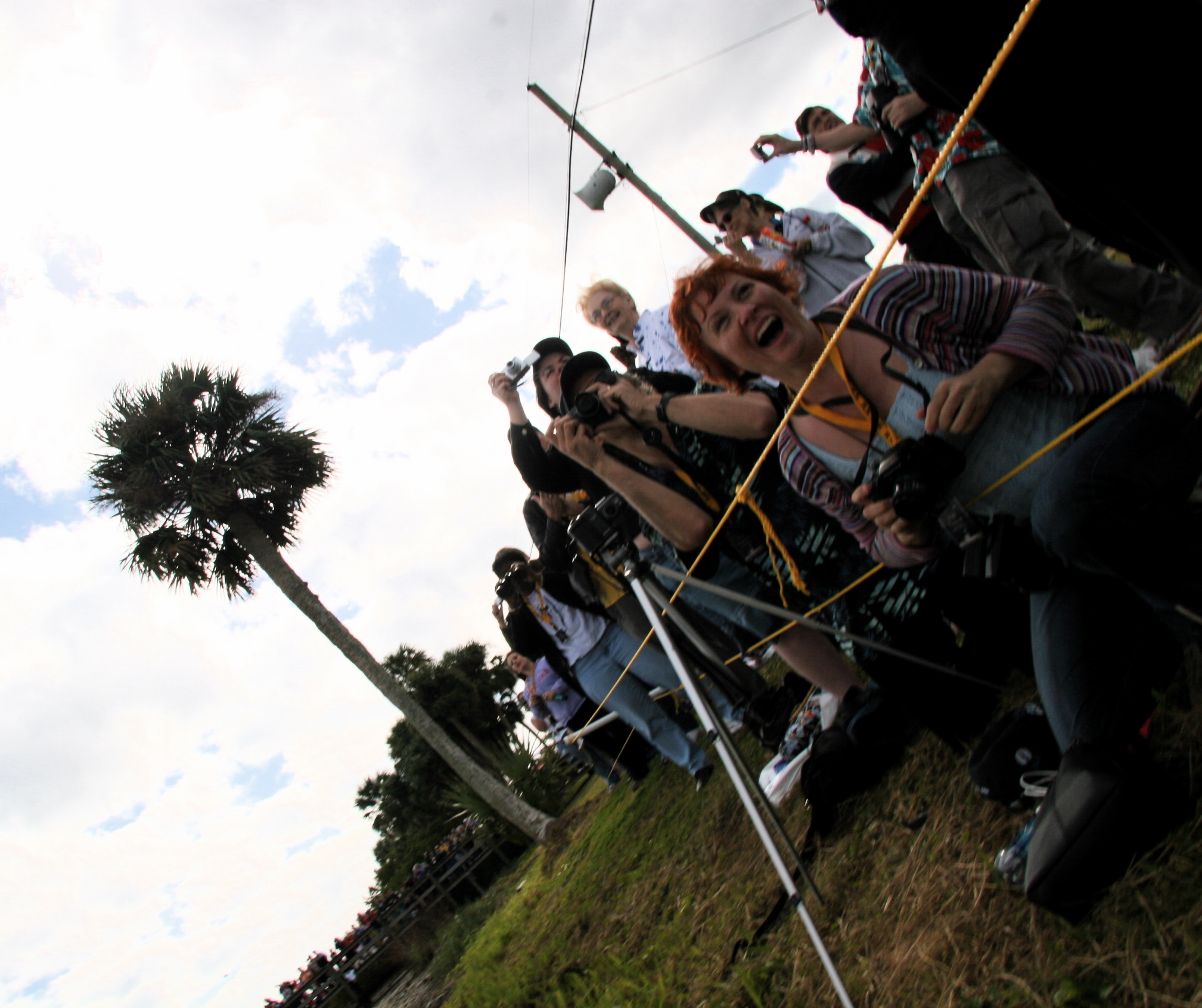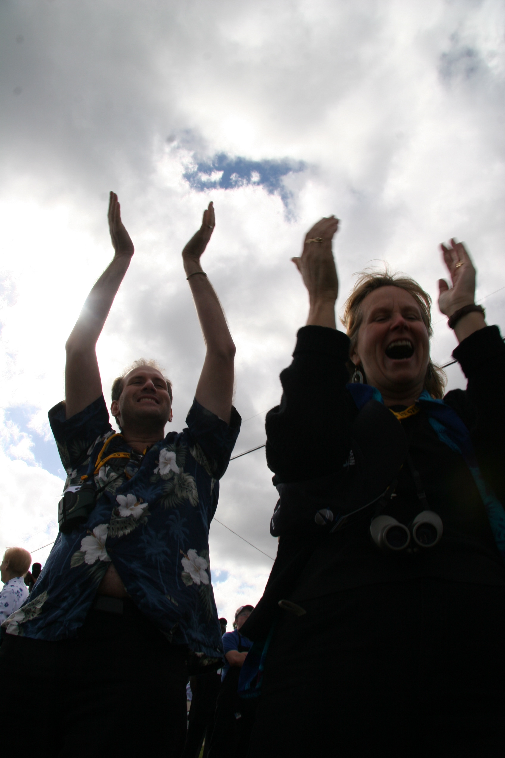| An unanticipated problem: what to do with the kids of 1400+ people watching the launch? A game of Red Rover runs until a minor injury is had. |