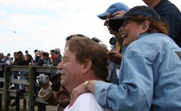 | Check out those packed stands! Bottom: Julie, Peter Tamblyn, Rosaly Lopez, Jane/John/Fran Spencer. Top: Marteen Versteeg, Diane Miller, Billy Merline, Normster Heinen, Jeanette Thorn. |
