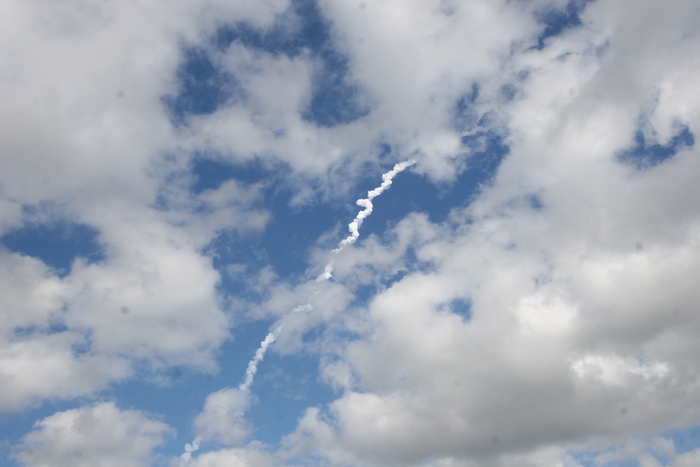 | A minute or two into flight, the launch vehicle's out of sight. |