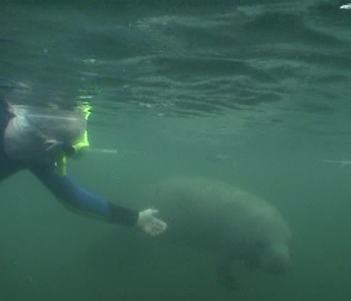 | Manatees love power-boat propellers. Hmm -- is this a problem? (NB: Our driver is manatee-certified and we did not put any manatees at risk during our ultra-low-speed cruise.) |