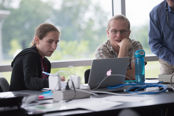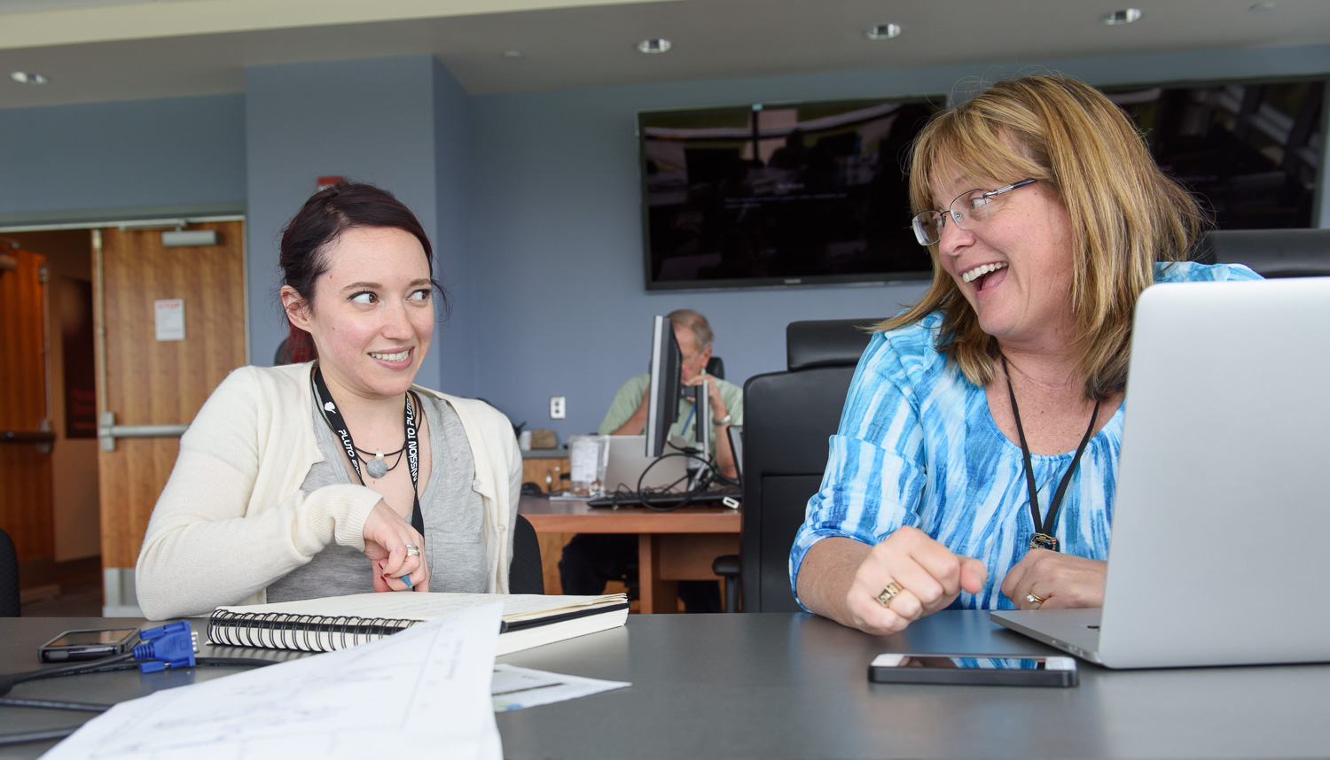 | In the GGI room, Amanda Zangari and Veronical Bray have a plan for that Playbook. Photo by Stuart Robbins. |