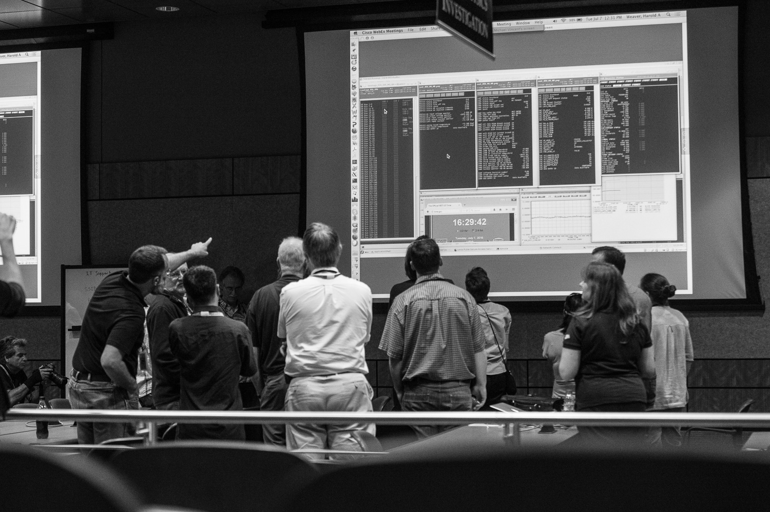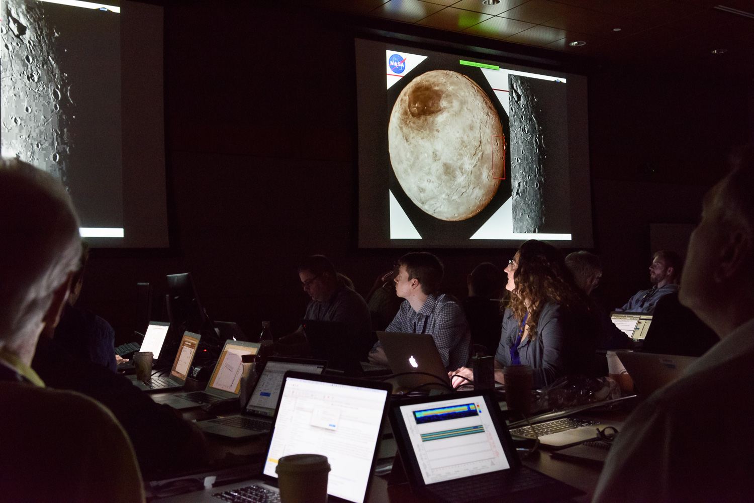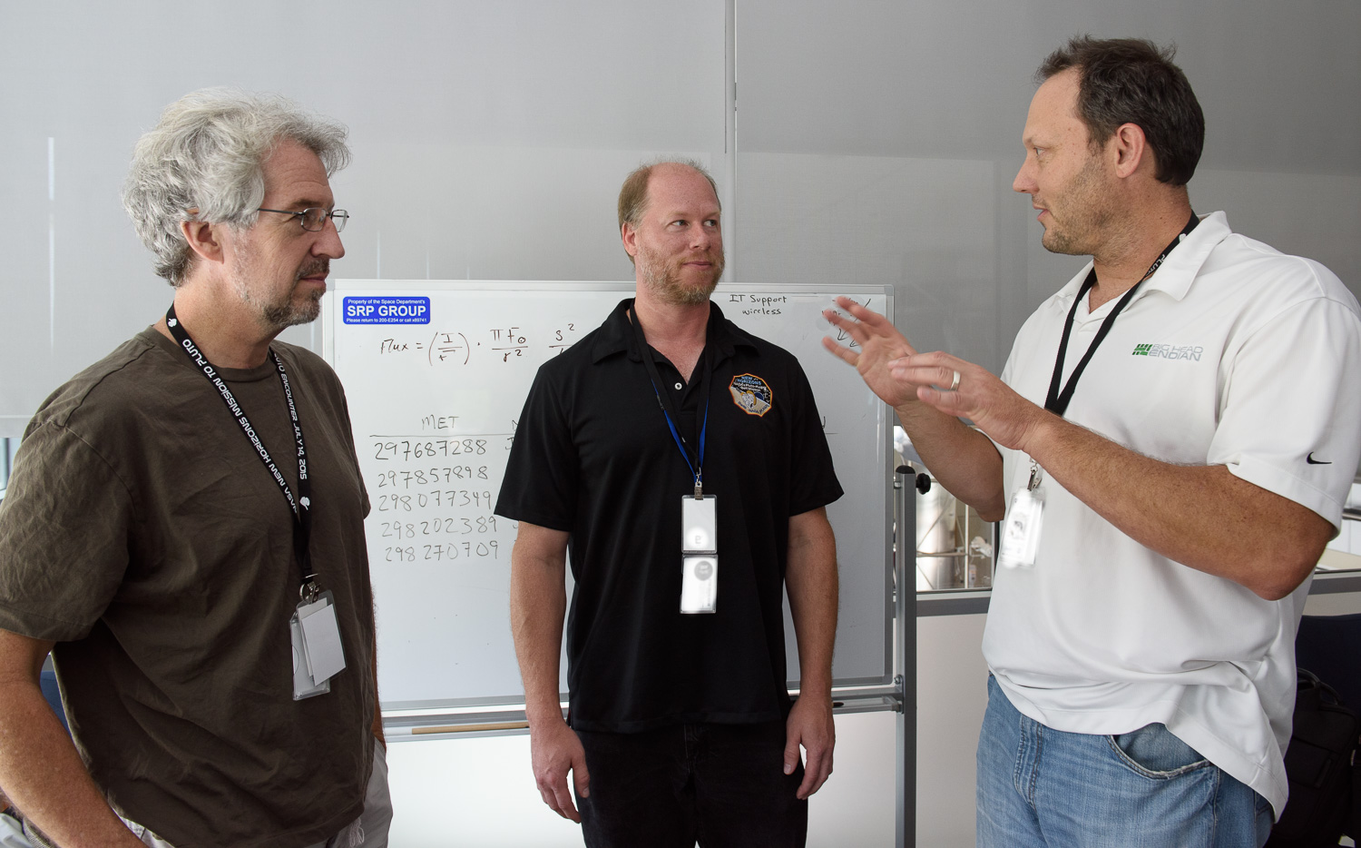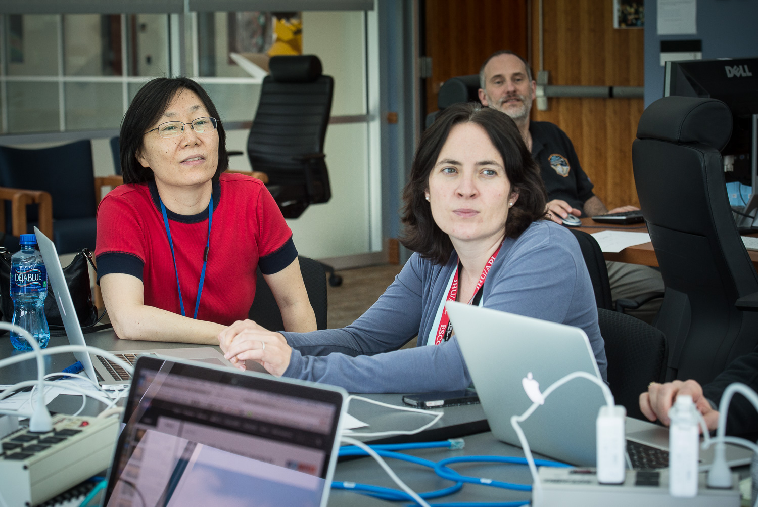 Usually APL is a secure 'no photos' zone. But New Horizons is a historic mission, and it would have been a loss to not be able to document the human side of the encounter. Through special arrangement with the mission and APL, several members of the New Horizons team were given permission to take pictures in APL's Building 100, where the Science Team was based. Although I spent most of my time doing mission work, I usually took my camera with me, and was able to photograph the team freely throughout the encounter. The team was spread over a half dozen large rooms at APL, working in very close proximity for most of the encounter. Many of the engineers and managers are in Building 100, although some are on APL's main campus.