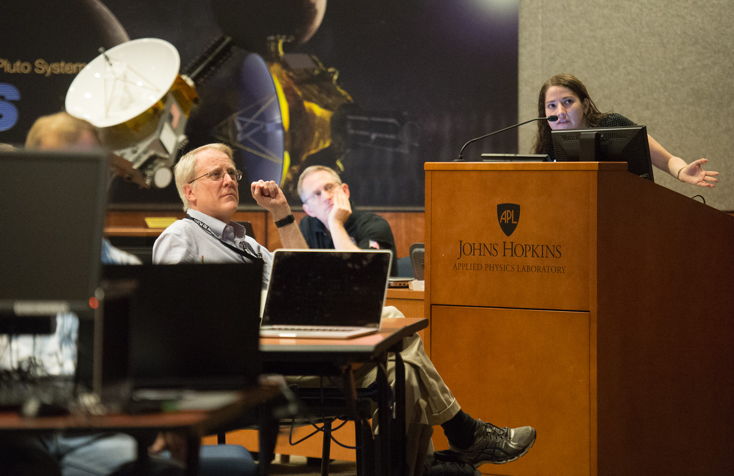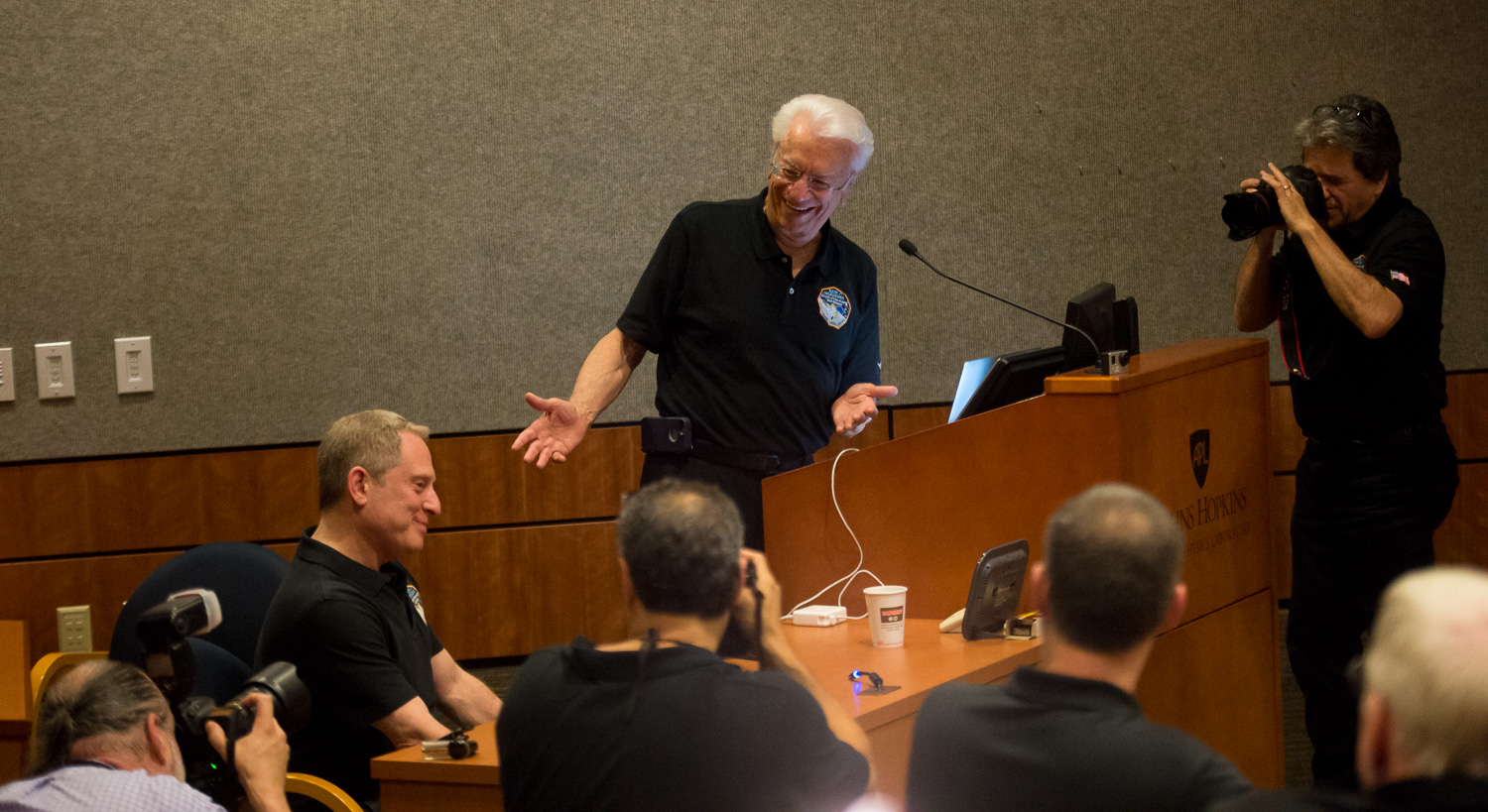 Some events, especially on the encounter day, were at the Kosiakoff Center, which allows cameras. And none of us were allowed in the Mission Operations room, across the street on APL's main campus. For those, you'll have to see the photos from NASA's official photographer Bill Ingalls, and NH mission photographer Michael Soluri.