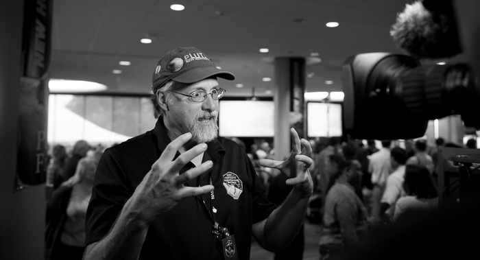 | Marc Buie has given an intense number of interviews. (And check out that hat too -- those were given out at launch in 2009.) |