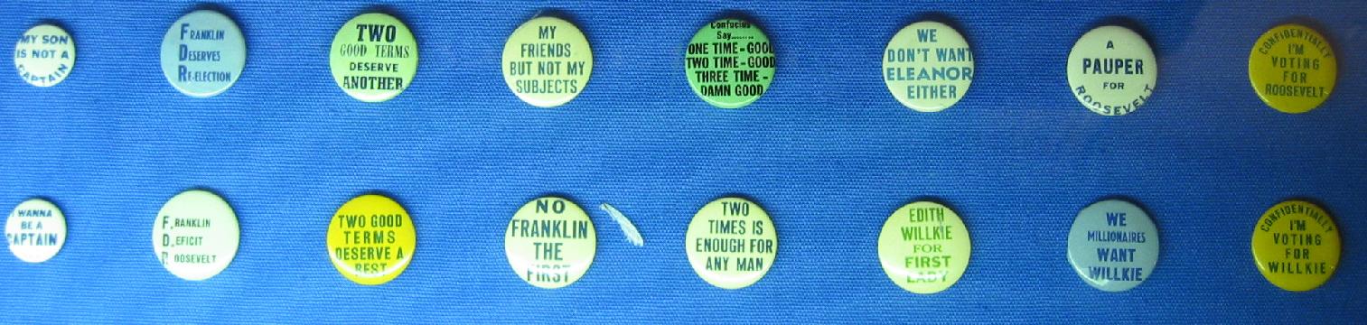 Campaign buttons at the FDR Library N. of Poughkeepsie. The top row were