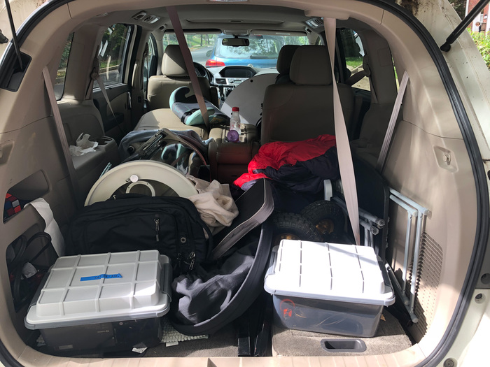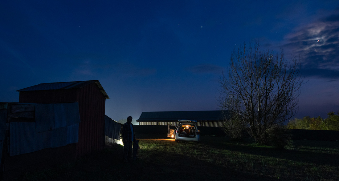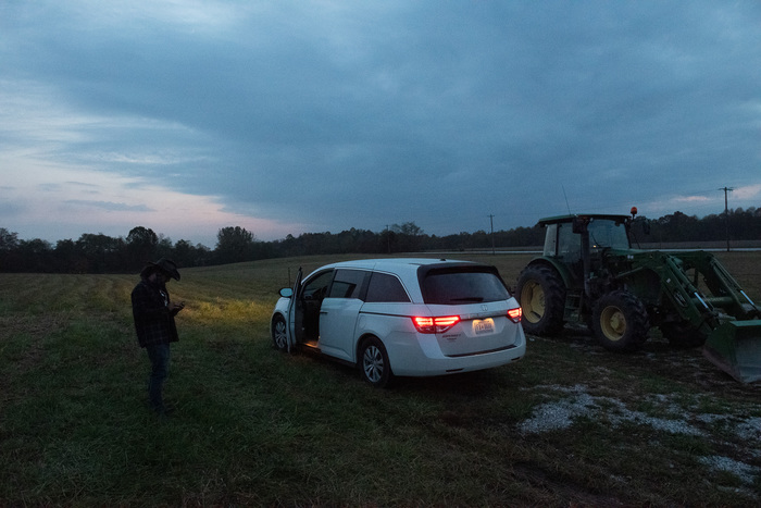 | Our tractor site doens't turn out to be good: there are a couple of poorly placed lights, and we move across the highway. |