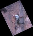 movie of Aaron and Amy climbing beneath the painting of the Virgin.