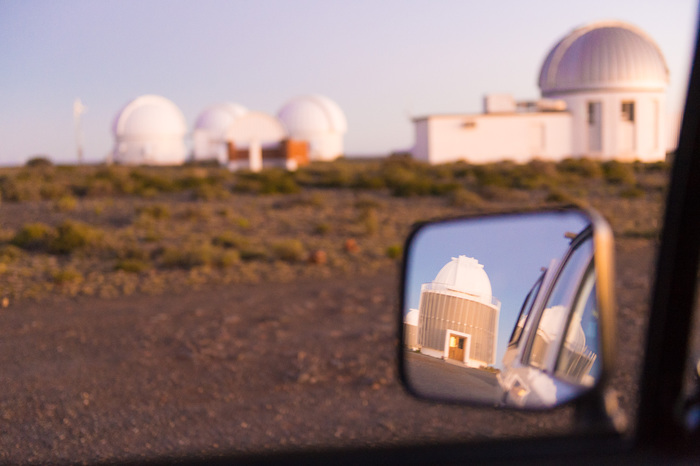 | I'm driving up to observe at the 1m. That's the LCOGT trio on the left, and the Japanese IRSF at right, with the 0.75 m (I think) in the mirror. |