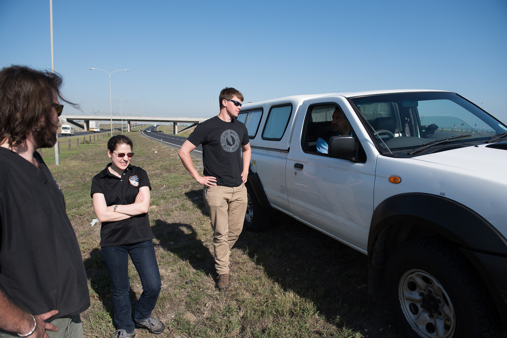 Aaron and I have picked up supplies and a local obsever in Cape Town. But as we leave the city limits, we get a call from Amanda and Christian, who have suffered a breakdown heading out of town. The rental car company is en route with a replacement, but we come by to make sure everything is sorted out.