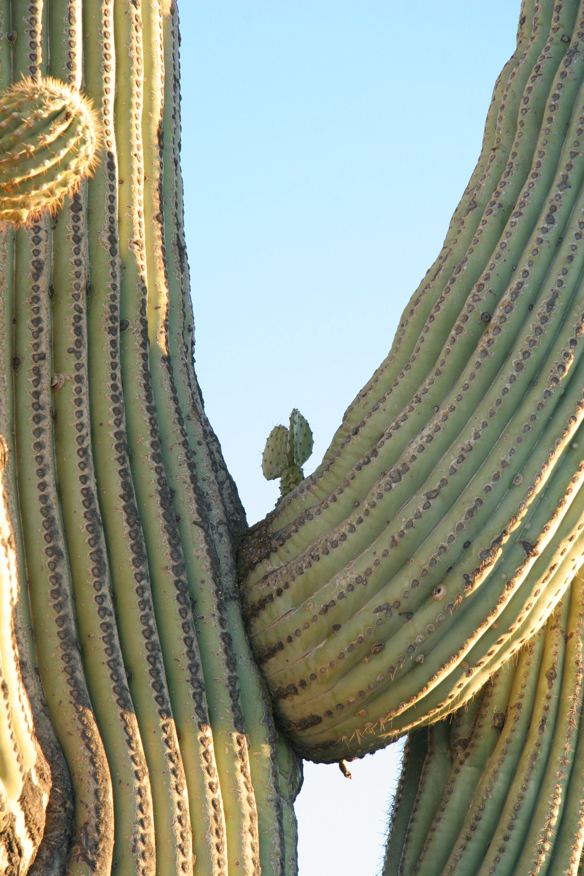 Ooo! A prickly pear lives inside the saguaro! (Not tricked -- it's really there.)