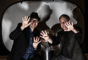 I give a talk with a magician and engineering students in Baroda, India, February 2016