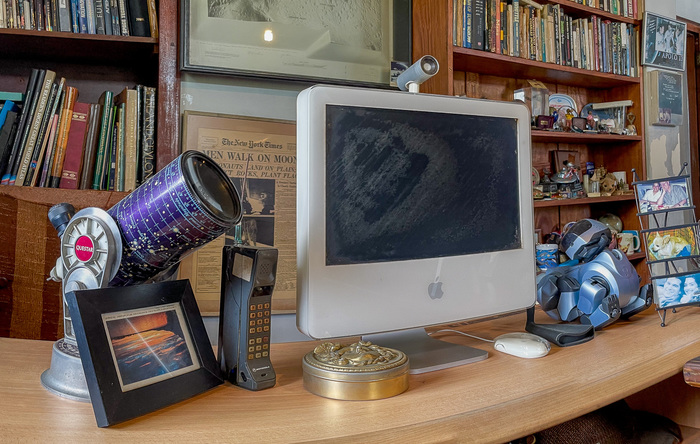 And of course I loved seeing the cheap Dialog satellite dish bolted onto his roof pointed at the sky. Clarke invented the concept of the geostationary satellite in a JBIS paper in 1945 at age 27... and there it is, exactly as he imagined, the fixed dish not only on his house, but billions of others across the globe.