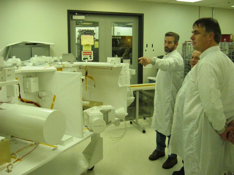 LORRI telescope; SDC electronics (small box right and below LORRI); two star trackers (to right, beyond large baffle).