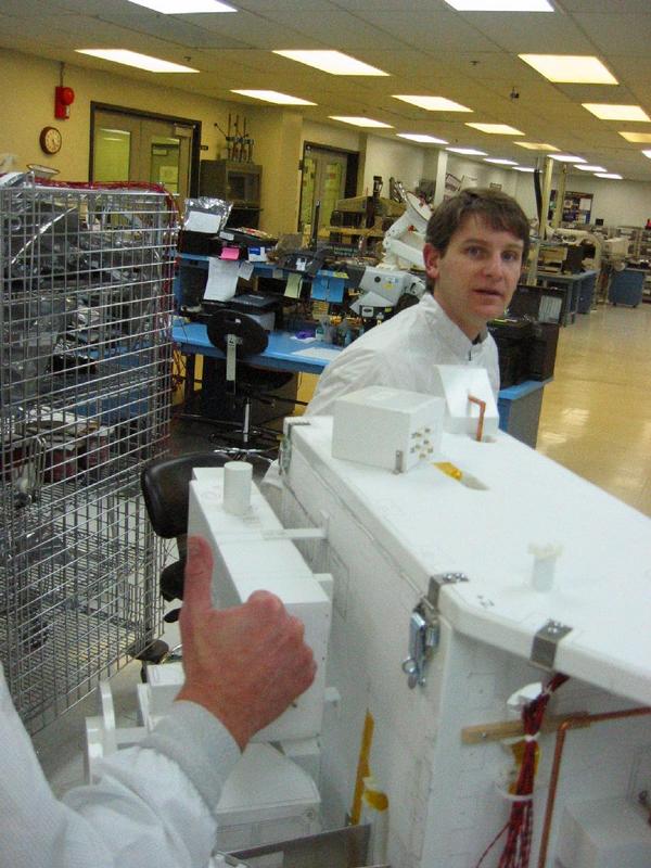 Non-flight-qualified hinges. (Also a thruster in front of Mark.)