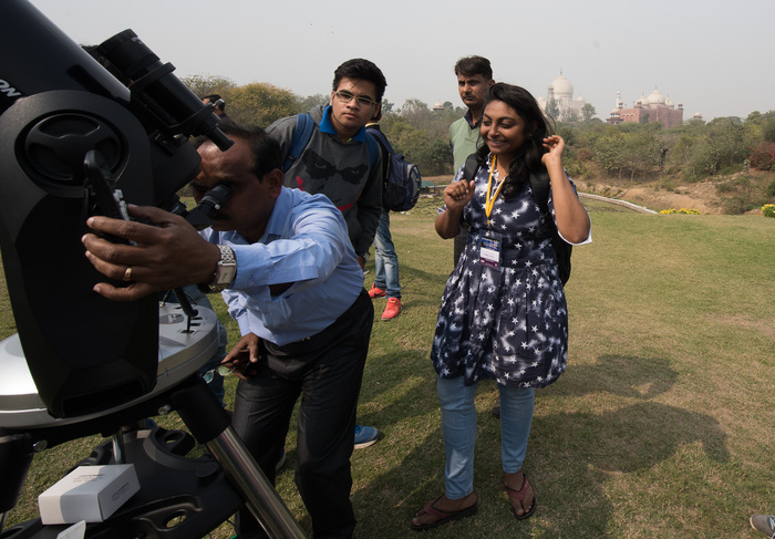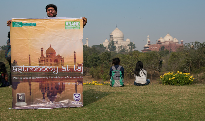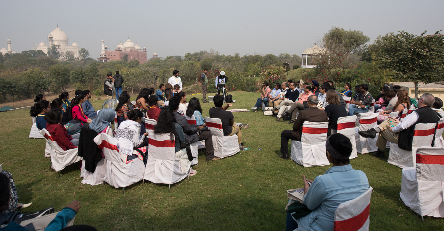 The conference was attended by roughly 30 undergraduate Indian astronomy & physics students, and a dozen Canadian students. There were another 50+ engineering students from the host institution, Anand Engineering College, in Agra. Most of these local students helped put the conference together. While India has some well-developed infrastructure in astronomy, most of it is centered in a few places (Bangalore, Pune, maybe Delhi?) so many students across the country don't get a lot of exposure. This was perhaps the first astronomy meeting in Agra ever. Besides tourists coming for the Taj, Agra is not regularly visited... the closest commercial airport is 3-4 hours away in Delhi. Our conference was at the College on the outskirts of Agra, about 90 minutes away from the Taj itself.