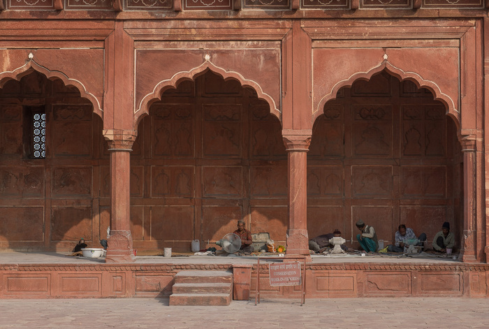 | Off to the side of the Taj proper are several other buildings, made of much more normal standstone. |
