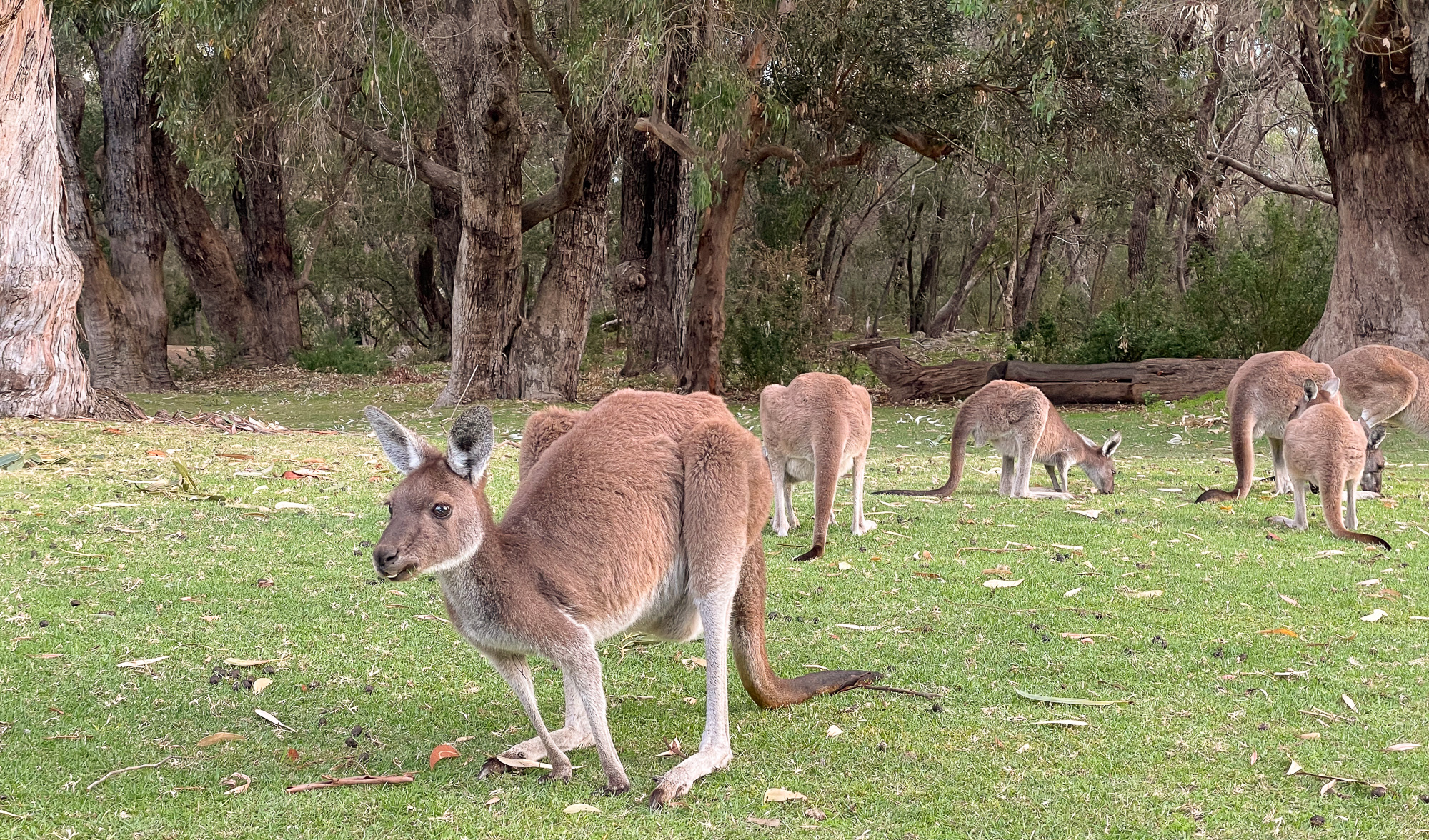 | Kangaroos! As common as they are, this was the first time we'd seen them up close. They are free-roaming, and particularly like the grassy areas of the park. |