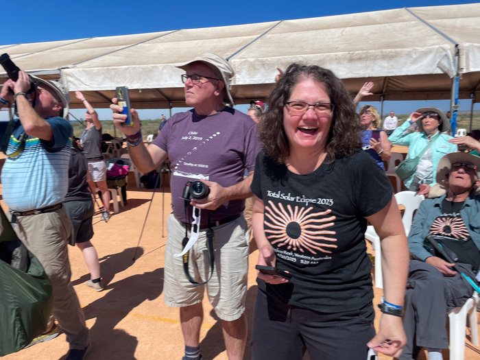 But my friend Vicky Sahami has seen a few! After we were in grad school together in Boulder, she founded Sirius Travel. It's an astronomy tourism company, and she has so far put together trips to about 20 eclipses. With the 2023 eclipse coming up, Vicky asked me if I'd come along as a guide. "We have 50 people who are paying to come along, and I need a third astronomer!" So I didn't take long to sign up, and I joined her and our grad-school friend Travis Rector.
