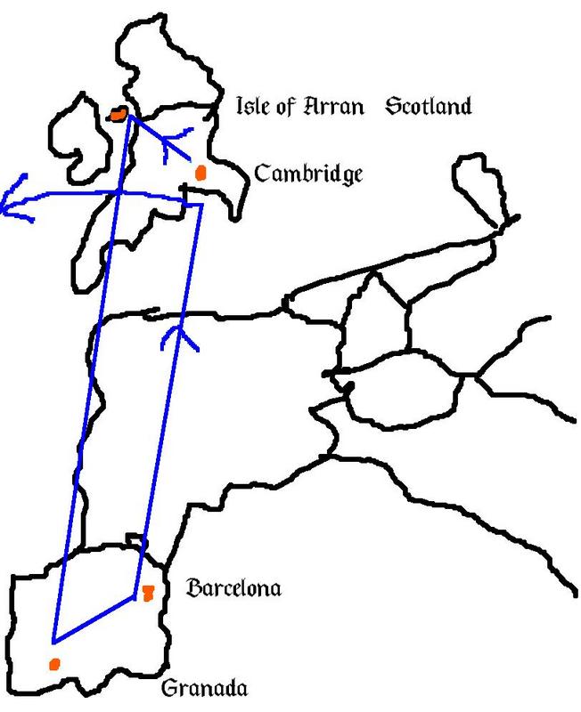 The basic plan is that I had a meeting in Cambridge, so I spent a week there. Afterwards, Mark and Maggie and I went to Scotland for a few days. Mark returned home, and Maggie and I continued on to southern Spain, and then Barcelona.