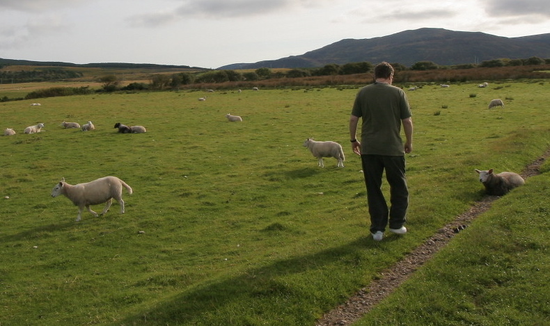Mark examines the sheep while we search for the Machrie Moor