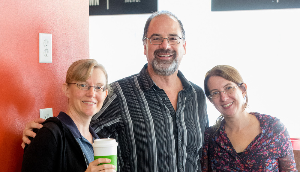 Amy Lovell (Agnes Scott), Casey Lisse (APL), and Laura Woodney (CSU San Bernadino) all seek refreshment, although only Amy has succeeded.