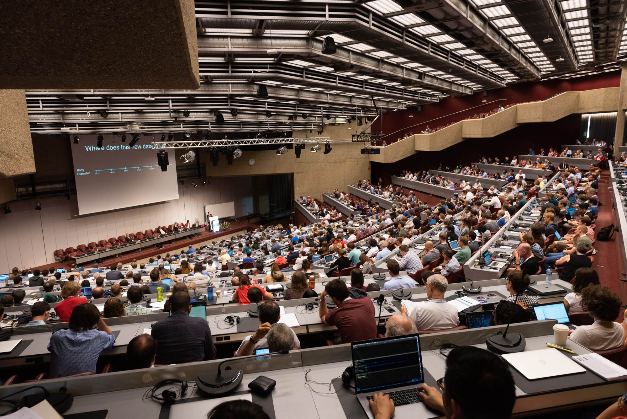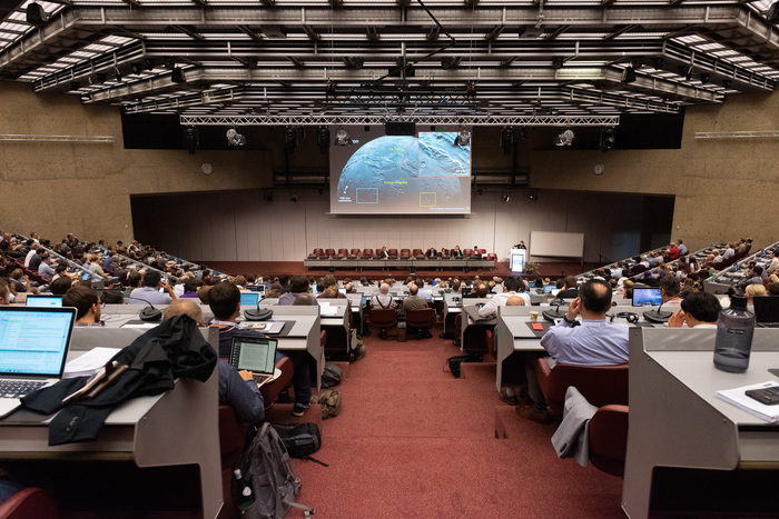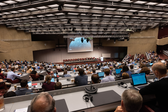 | The main lecture hall at the DPS-EPSC 2019 Geneva, during Kelsi Singer's Urey prize talk. |
