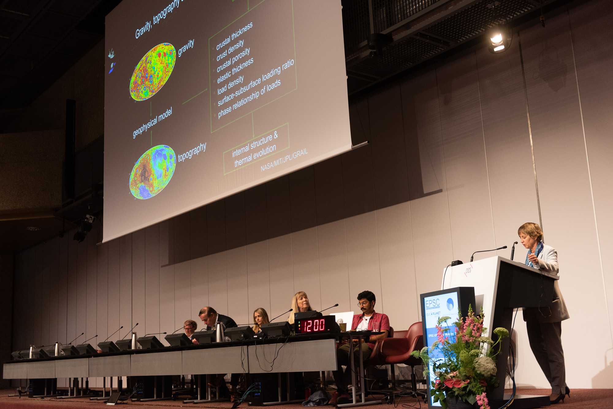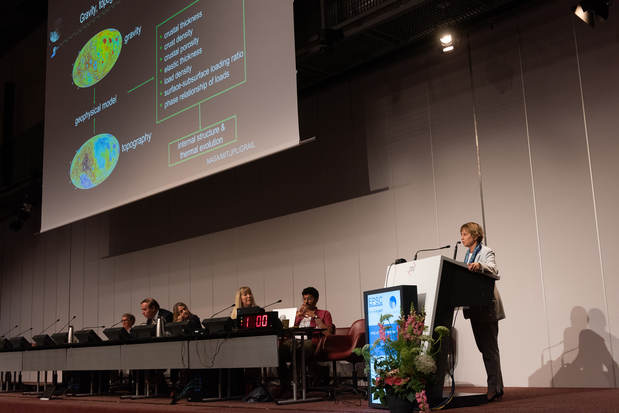 | Maria Zuber (MIT) giving the 2019 Kuiper prize lecture at the DPS-EPSC meeting in Geneva. |