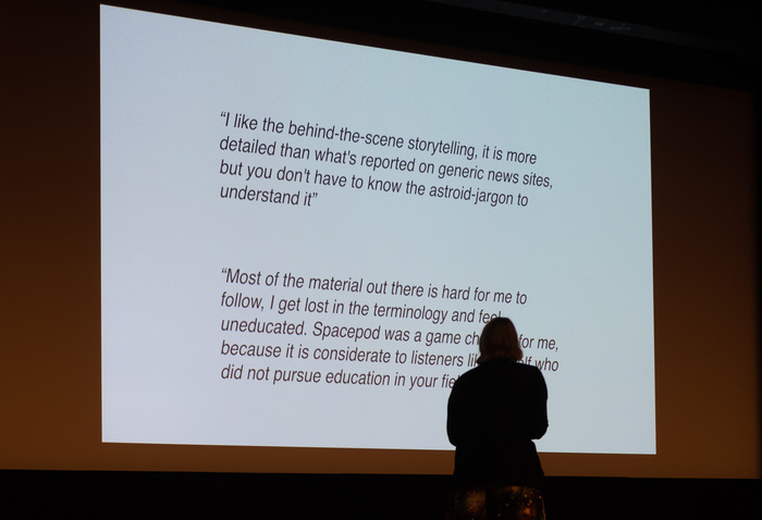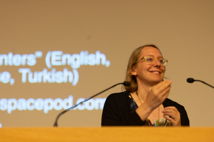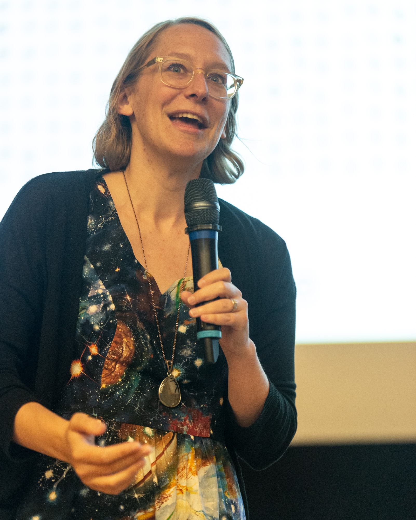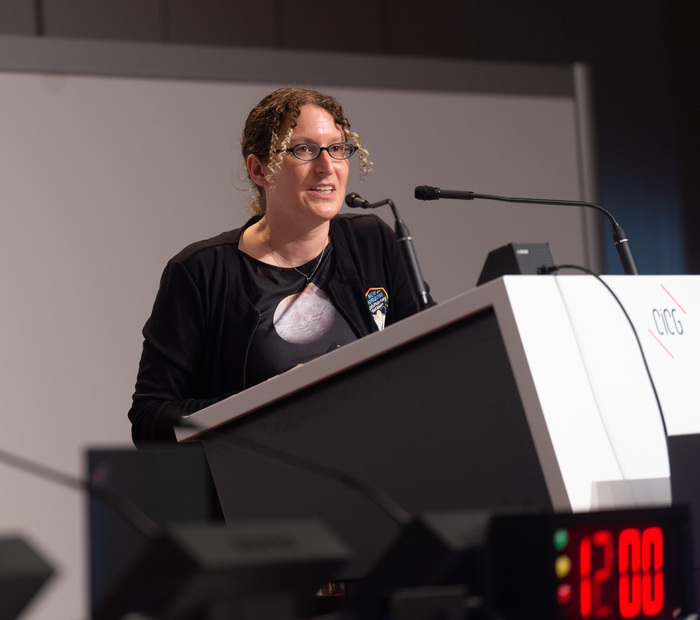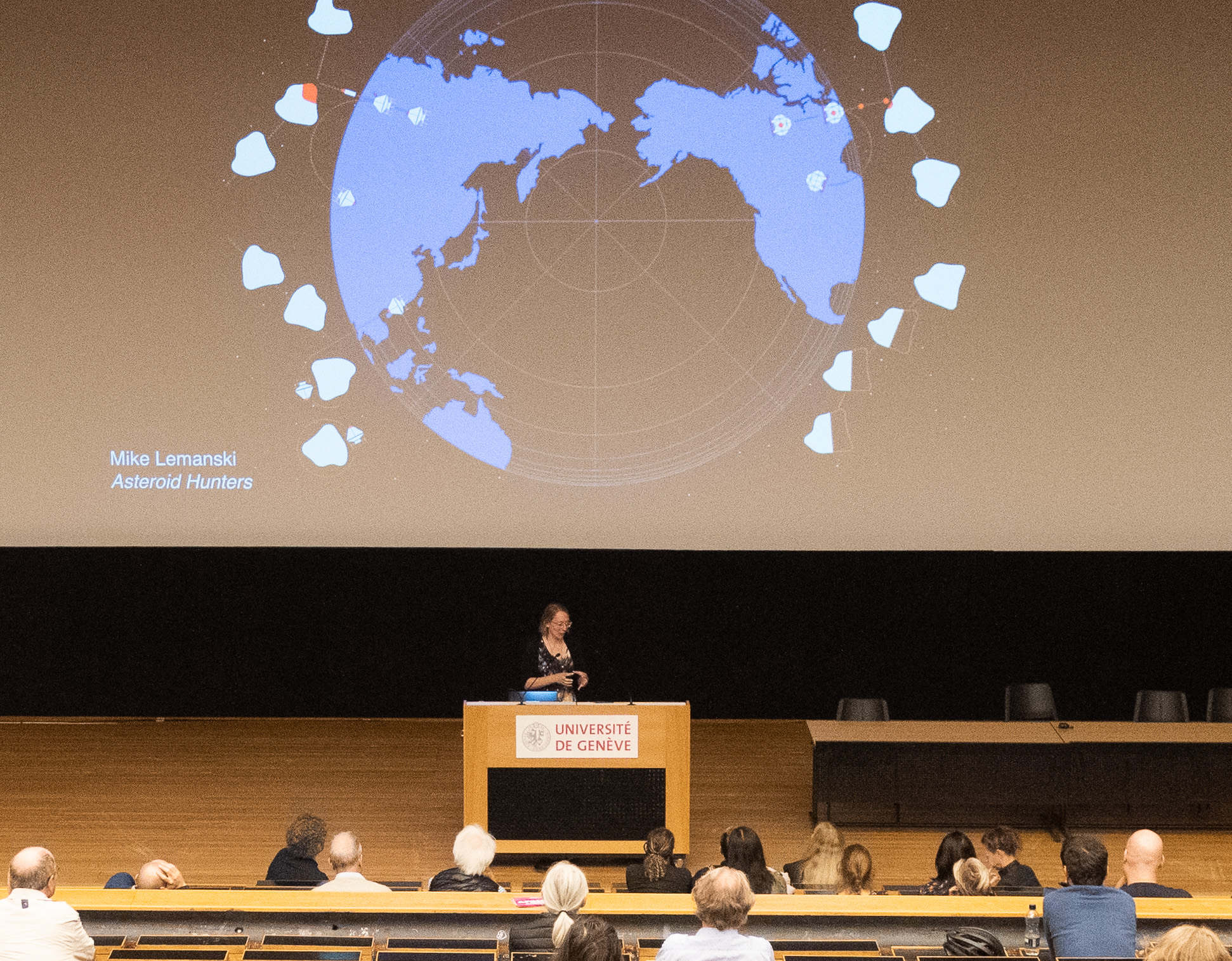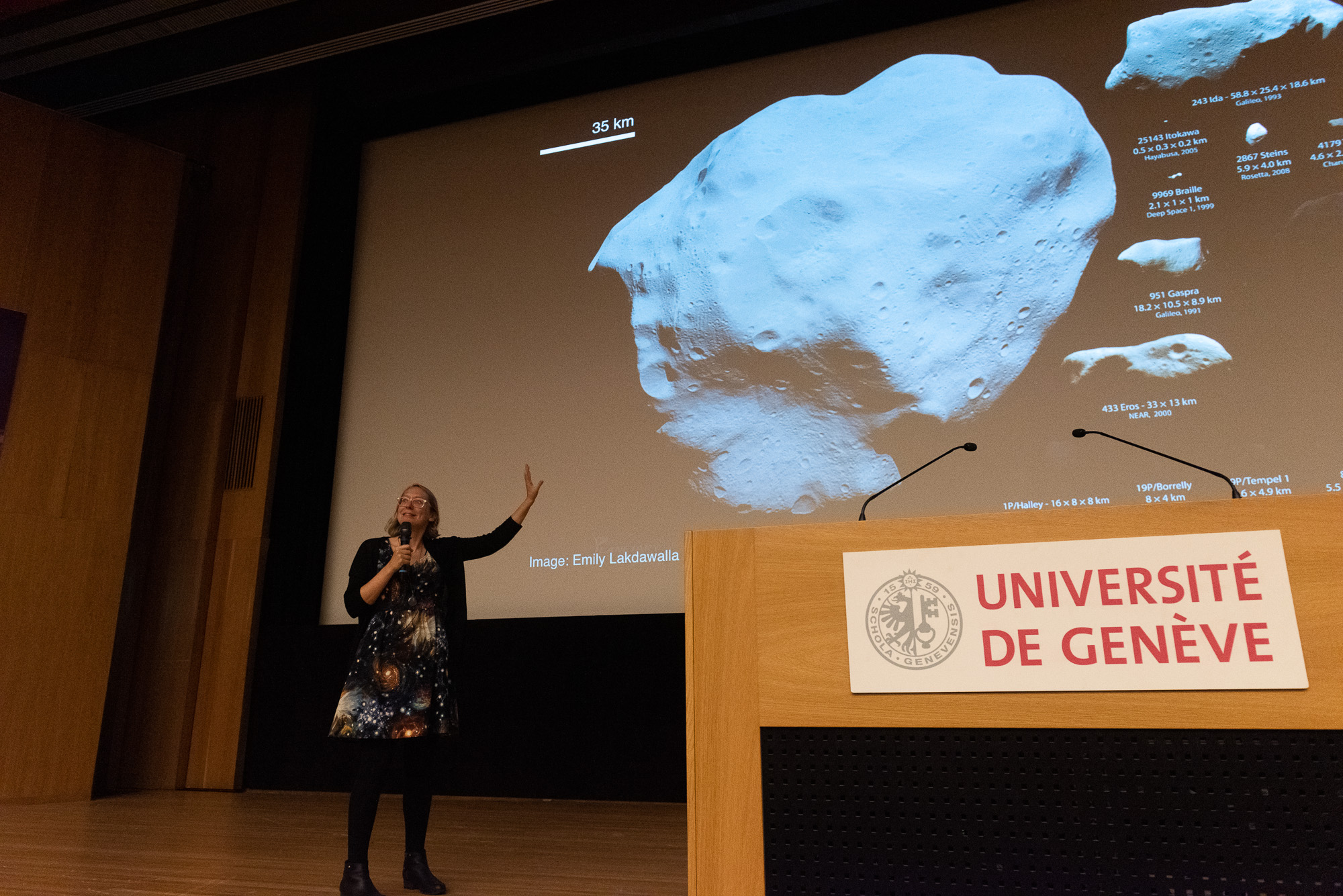 | Carrie Nugent gives the Sagan lecture at the DPS-EPSC meeting in Geneva. |