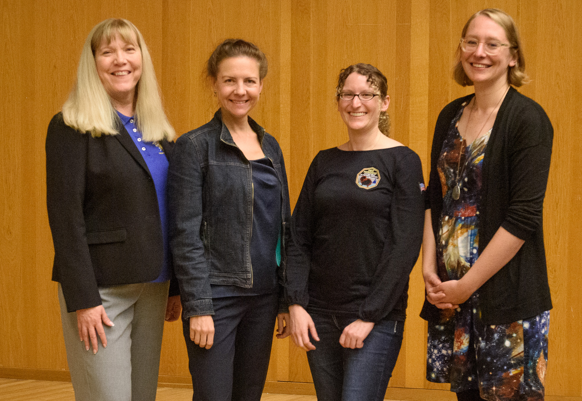 | DPS chair Linda Spilker (right), with the featured composer at the Sagan lecture. |