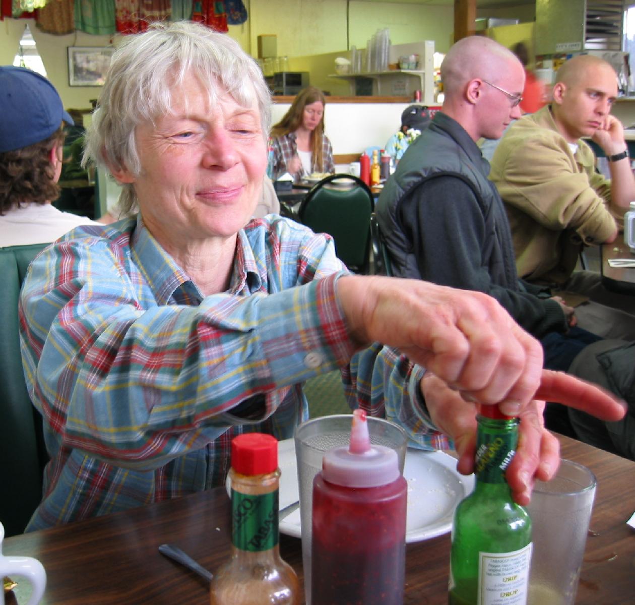 The next morning, JMT tightly closes the Tabasco for the next diner at Dot's.