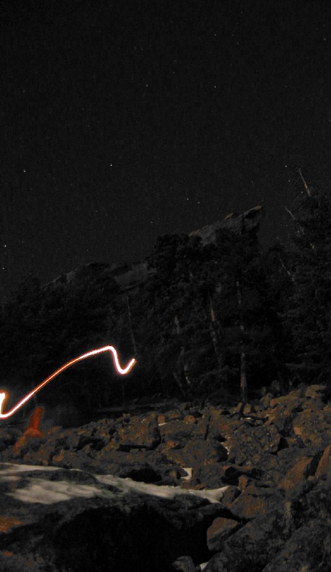 Through the boulder field. Fathi is the one in the orange jacket with the headlamp.