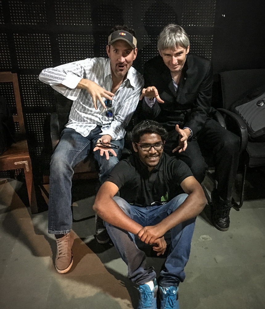 Here, we try our best to make Mayank Solanki (the organizer who recruited us both) disappear.