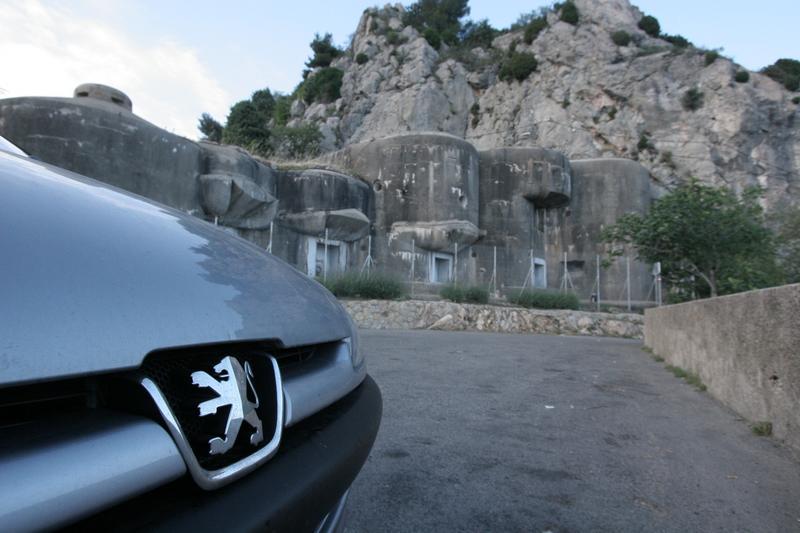 Fathi's patriotic Peugeot stands in front of the Tatooine-esque monuments in of another perched village. The '06' license plate (not visible) identifies him as a true patriot.