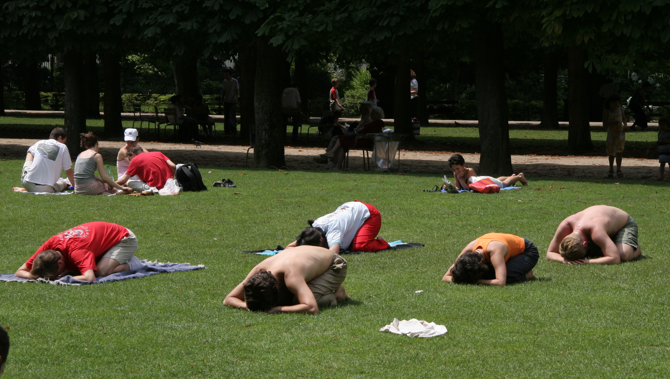 These individuals are not heeding the French government's official ppolicy on sitting.