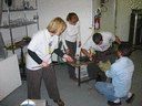 NB: I have been told that the photos are mis-titled: the `furnace' is in fact a glory hole, and the `tongs' are instead a jack. My apologies.