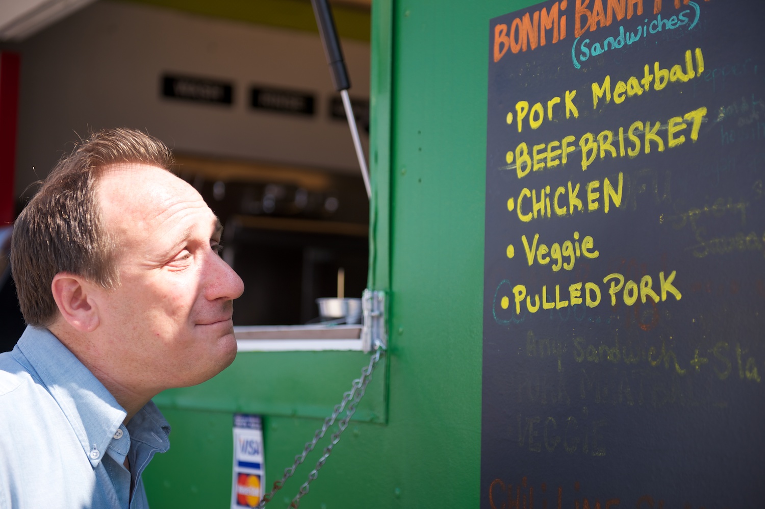 Max looks longingly at the vietnamese Banh Mi possibilities...