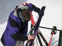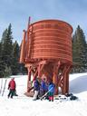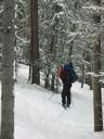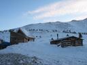 The hut is accessed by skiing up Boreas Pass Road (SE edge of Breckenridge) about 6 miles. The hut itself is at the top of the road, on the Continental Divide at 11,481'. The road is driveable/bikeable during the year, but closes come winter. The hut is simultaneously the oldest and newest in the 10th Mountain hut system, having been built in the late 1800s and renovated and opened for hut usage in 1997. We had about 6" of fresh snow the night before the trip.
