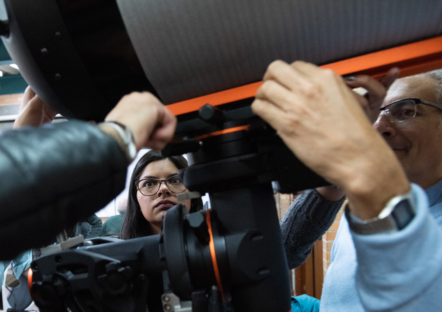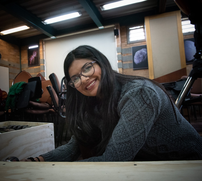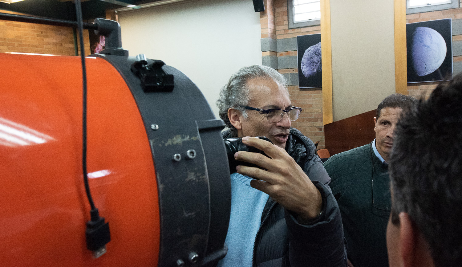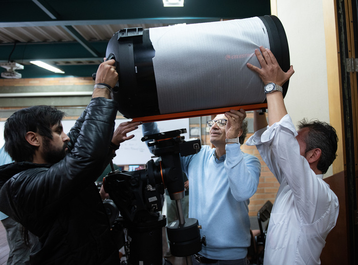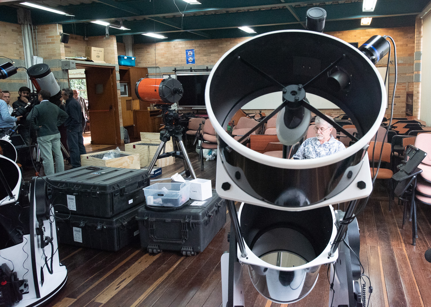 | Here's Diana Rojas, who runs the the Asociacion de Astronomia de Colombia (ASASAC). "This is the Pablo Escobar telescope... his personal telescope. It's about 30 years old. He had it so he could see who was approaching from a really long way away. After he was killed, it sat in the office of his lawyer for over a decade. Eventually the lawyer decided he didn't need it, so it ended up at the Observatorio here in Bogota. It has a new mount and the optics are still excellent, so we're going use it to observe the occultation on Friday." |