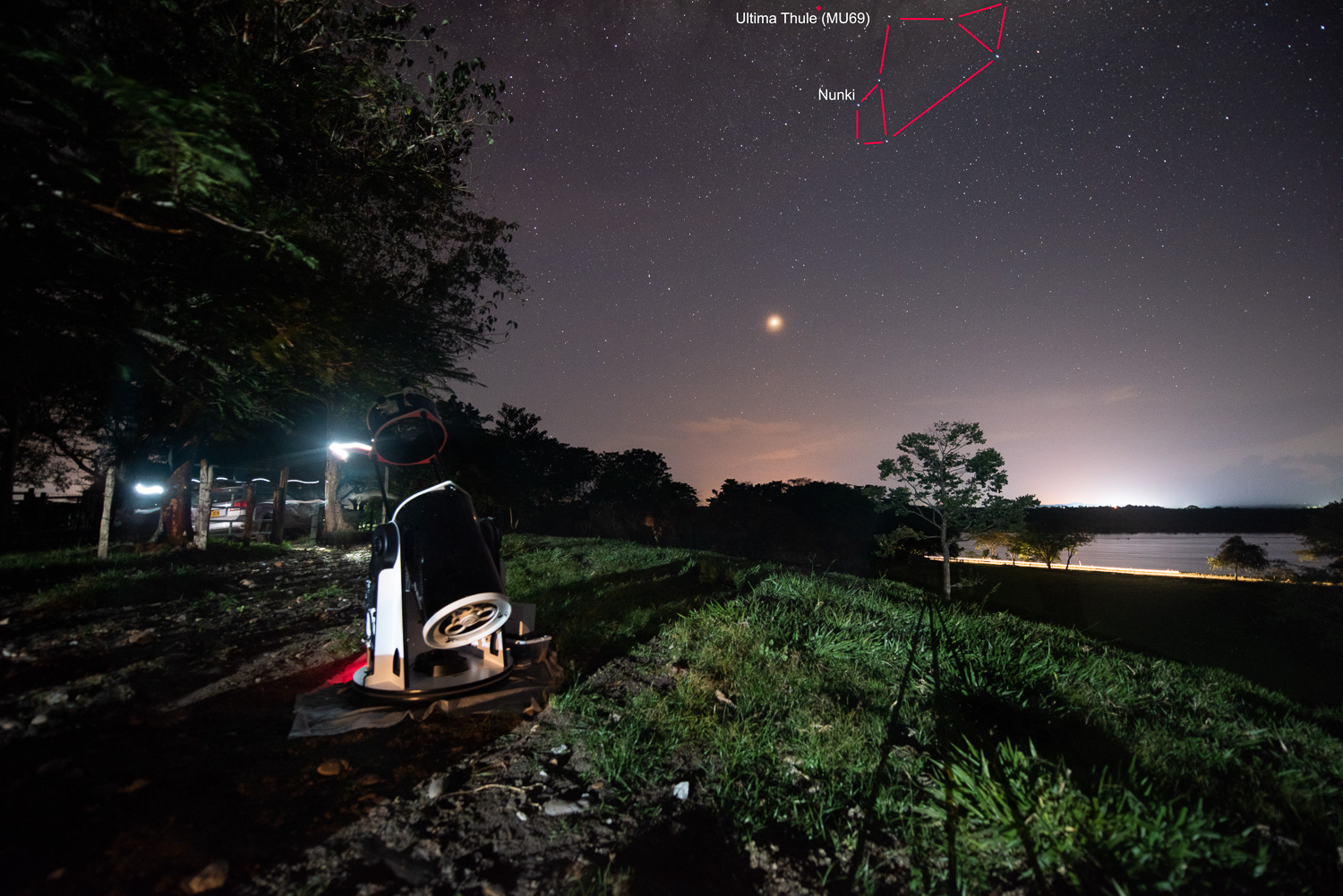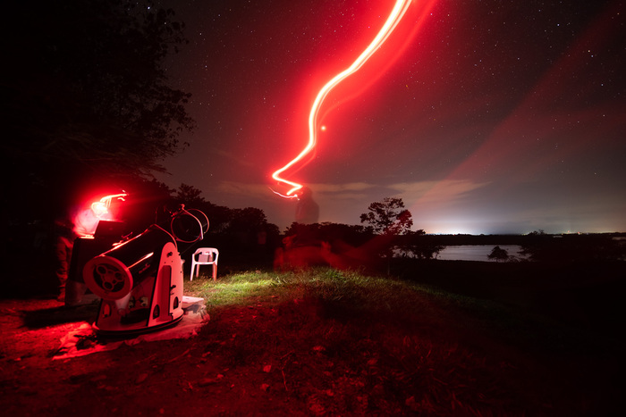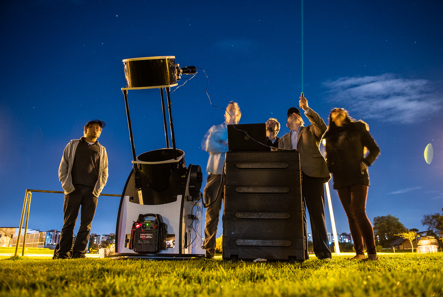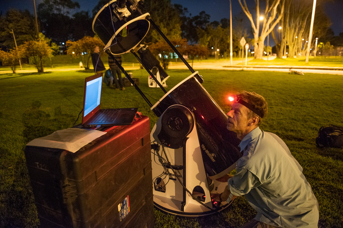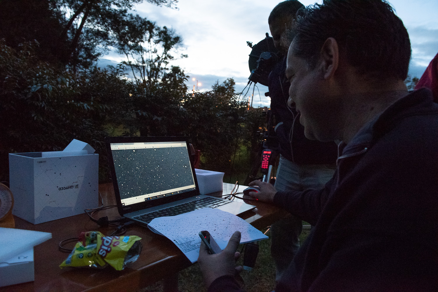 | Kai sets up for our occultation test-run. The idea here is that we will take exactly the same dataset at the real event tomorrow: same exposure, same pointing, same field. |