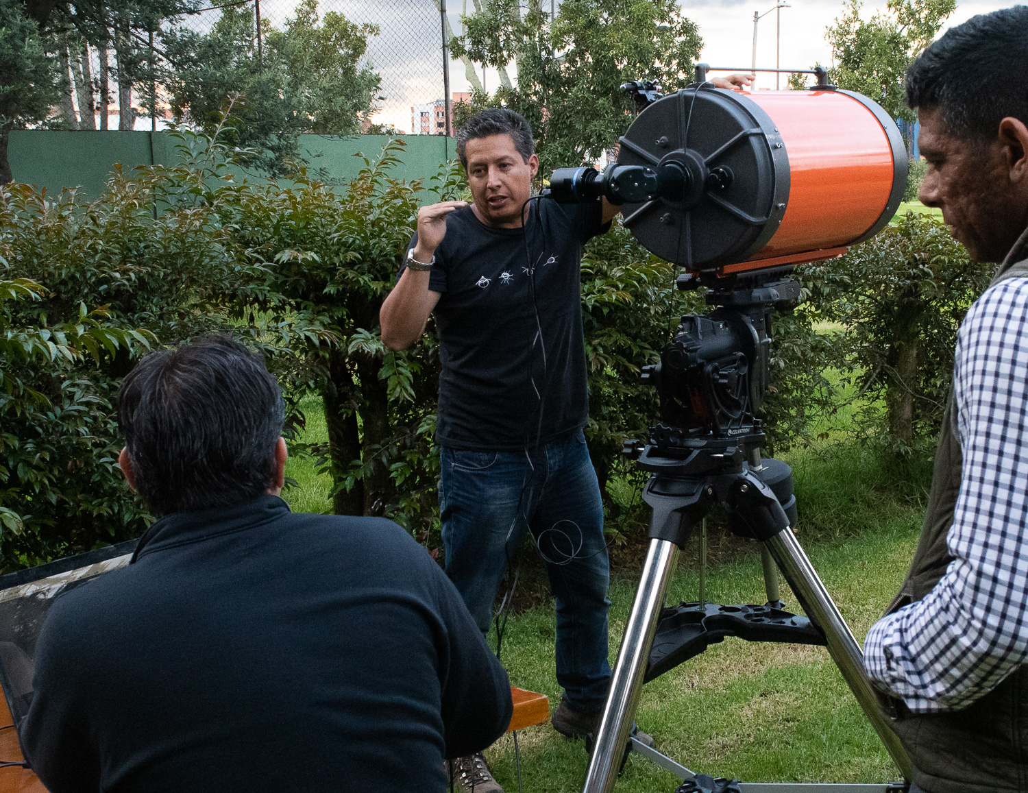 | Meanwhile, Kataline (U. Nacional) and Andres Molina have got the Pablo Escobar telescope up and running. |