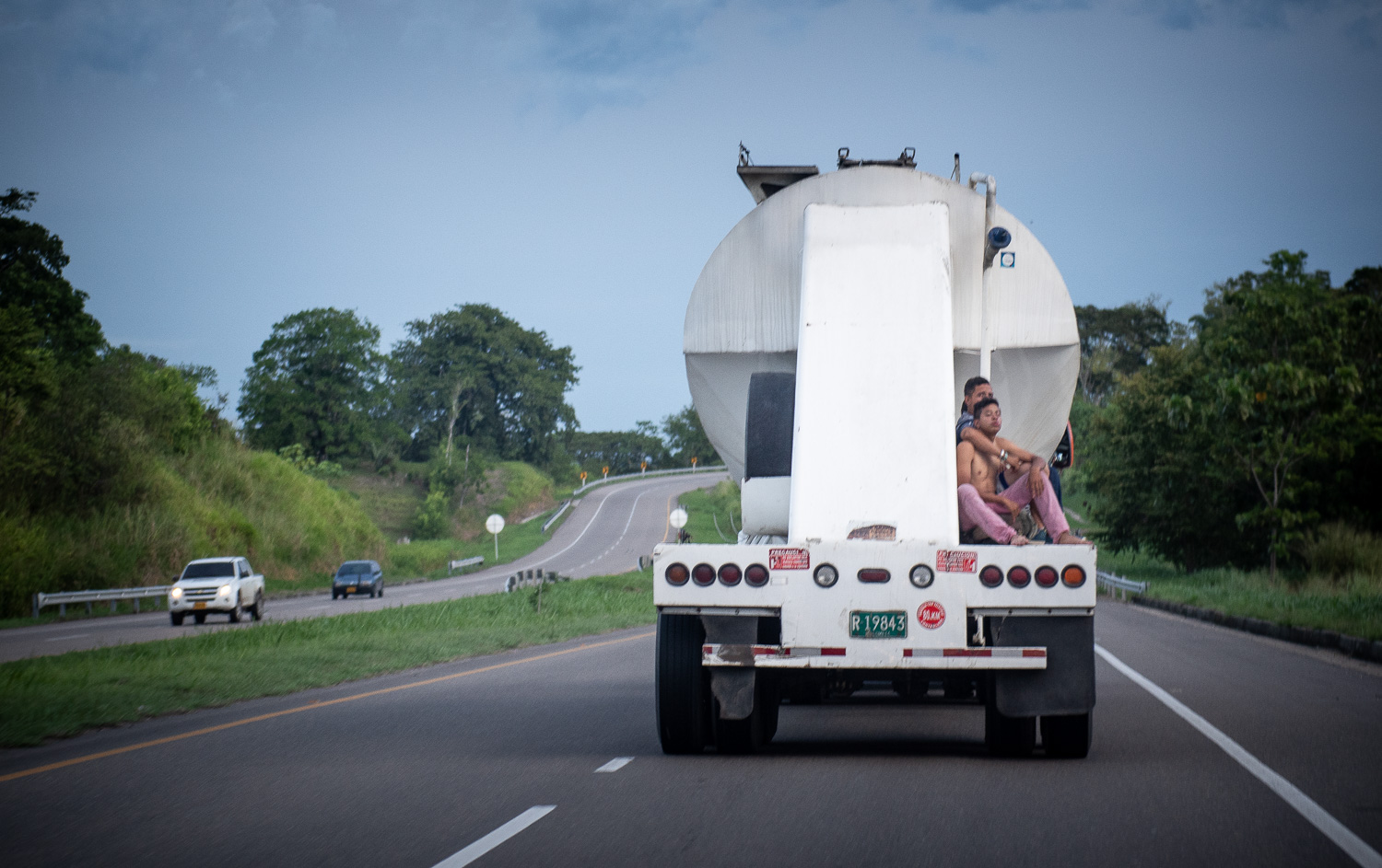 | Colombian trucks weren't quite as overloaded as they could be, but there were some extra passengers here and there. |