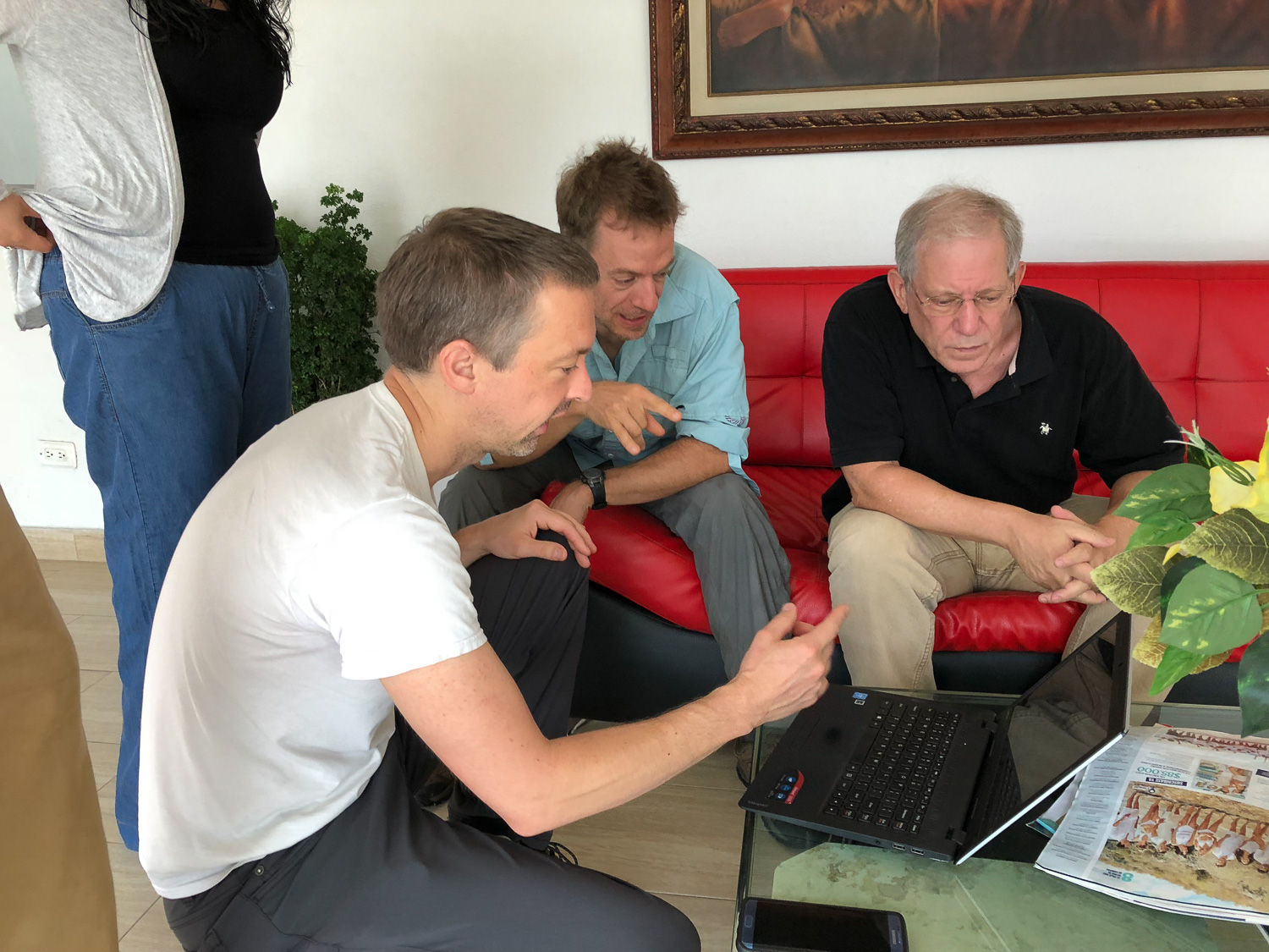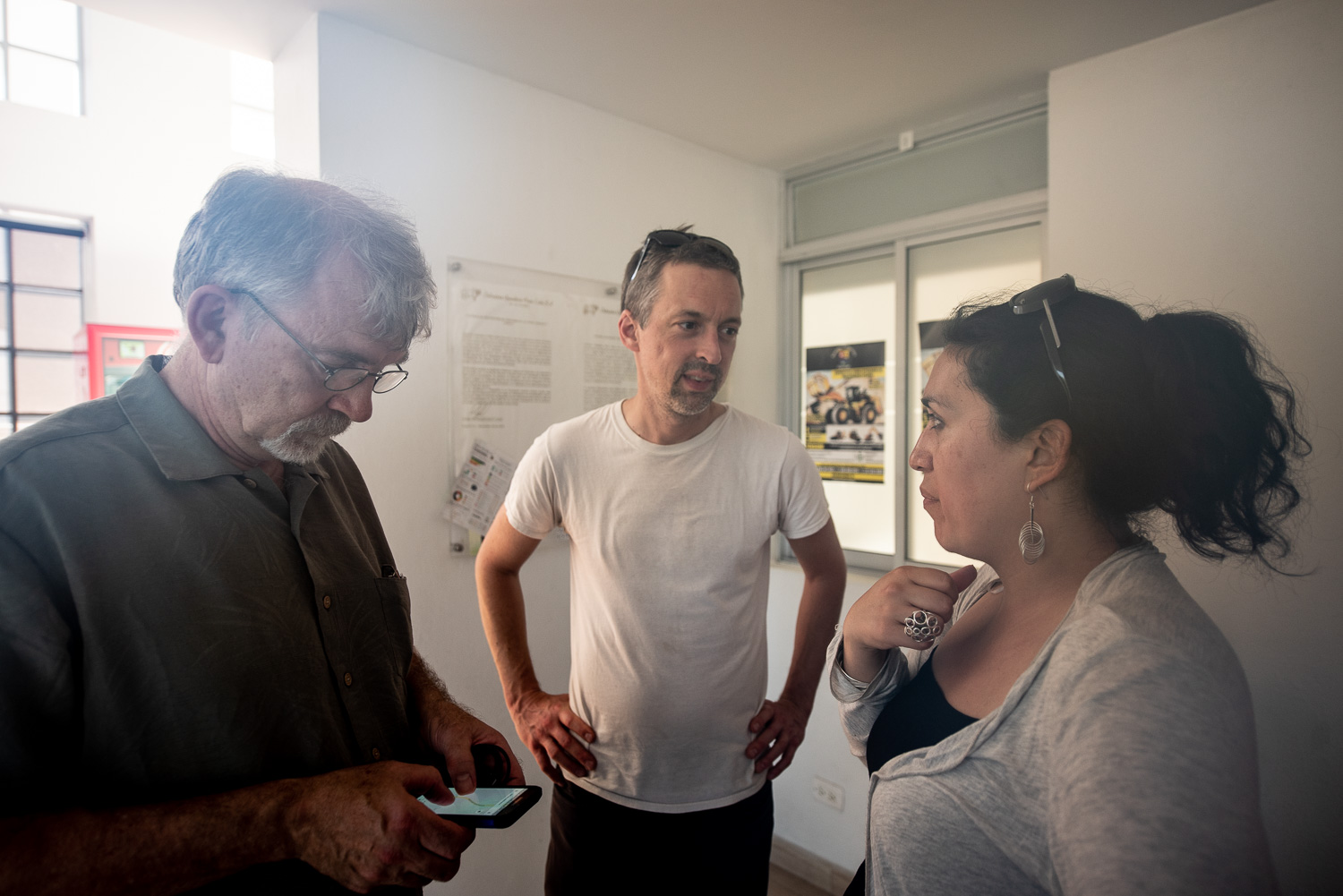 | At the Observatorio, ___, Giovanni, Sergio, and Andres Molina listen to Rodrigo. |